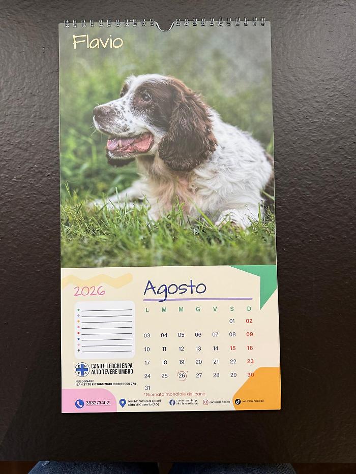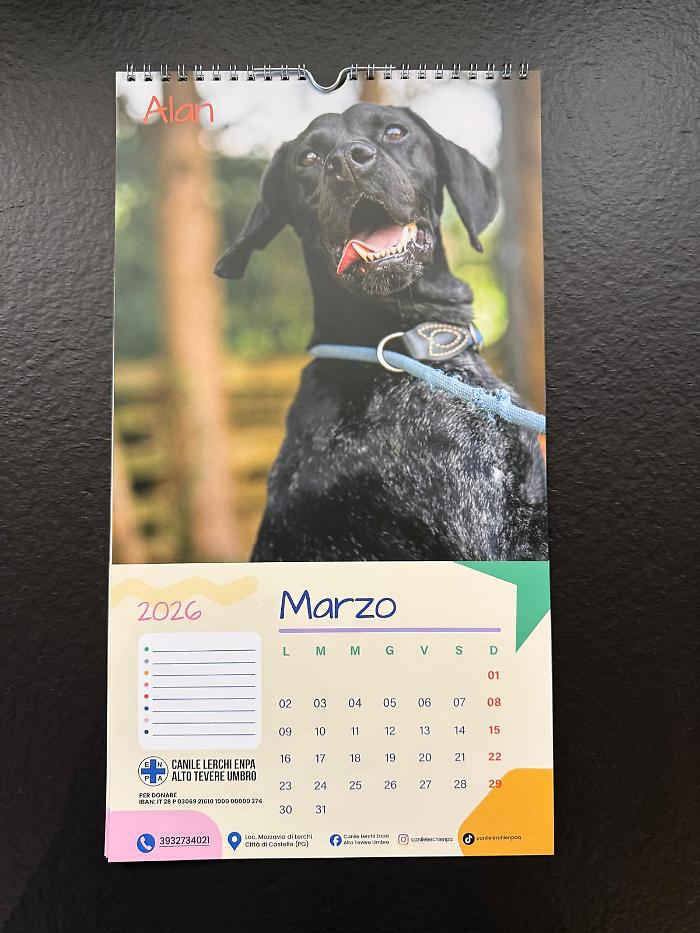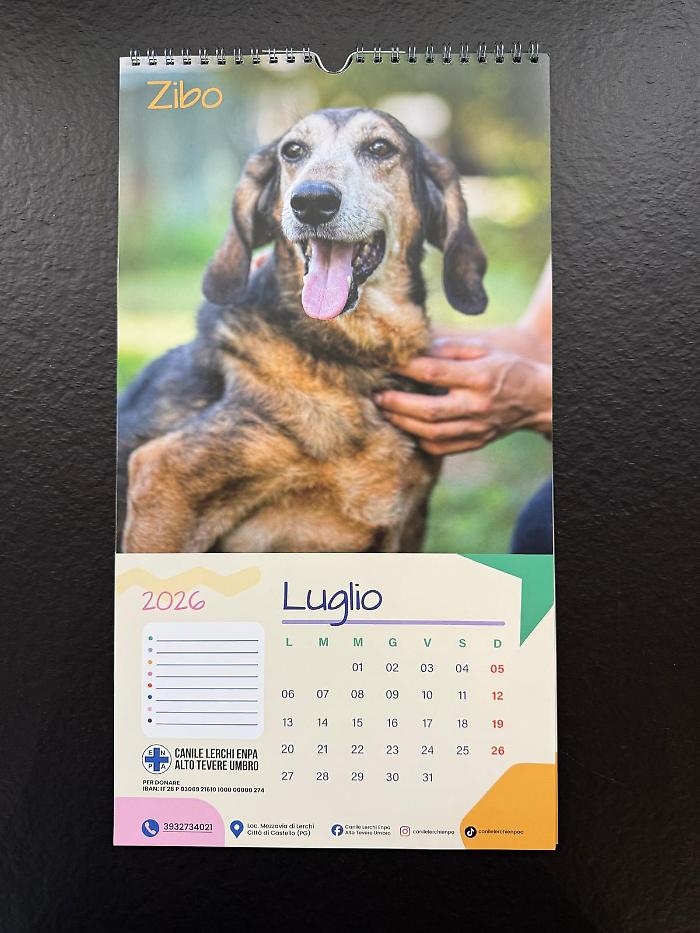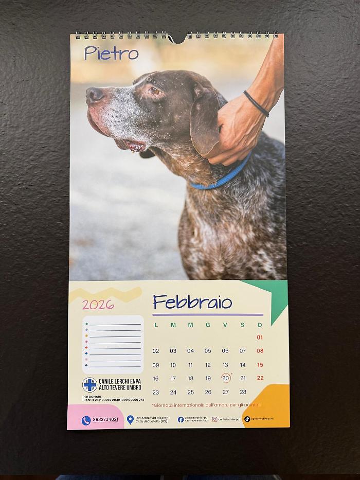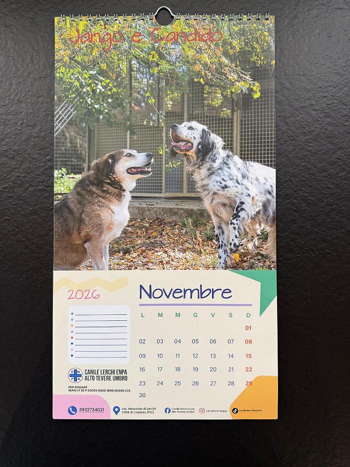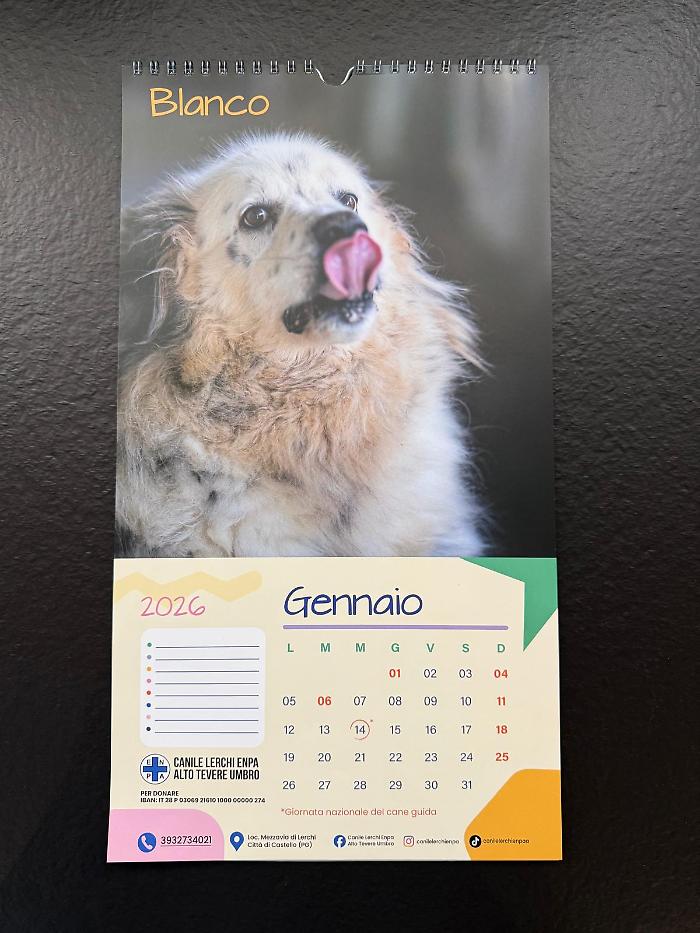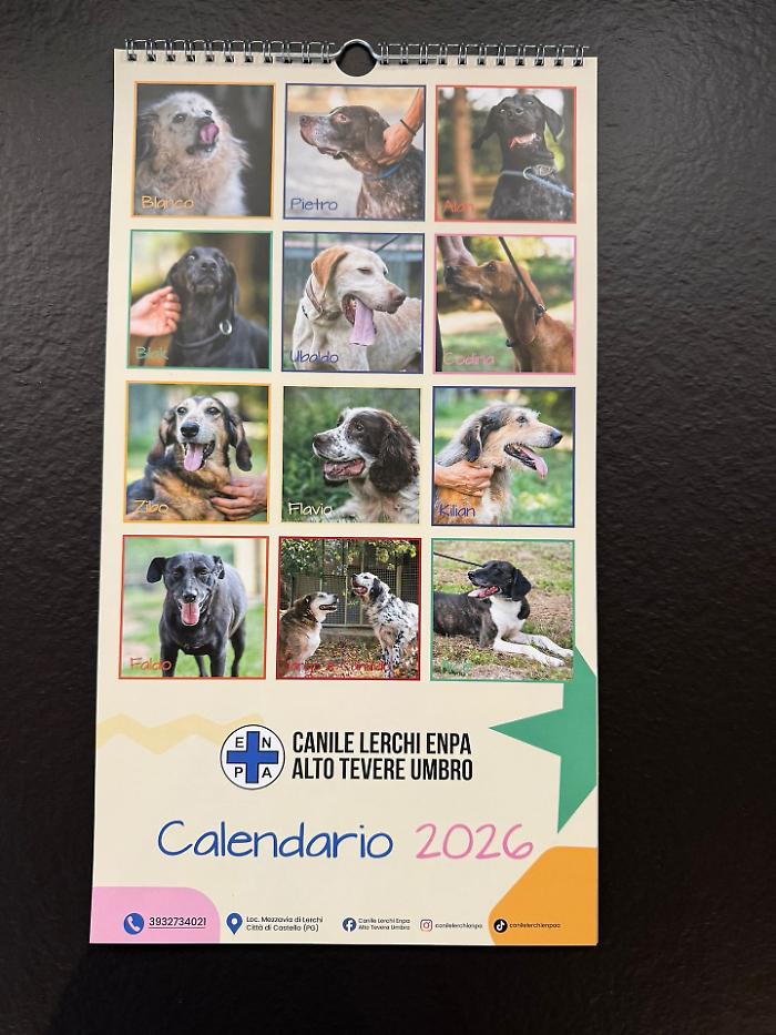 Dodici mesi, dodici scatti e dodici irresistibili protagonisti: Blanco, Pietro, Alan, Blak, Ubaldo, Codina, Zibo, Flavio, Kilian, Faldo, Jango, Candido e Ace. Sono loro le star del nuovo calendario 2026 dedicato ai cani ospitati nella struttura comprensoriale di Lerchi, alle porte di Città di Castello, dove vivono circa 120 animali in attesa di una famiglia.
