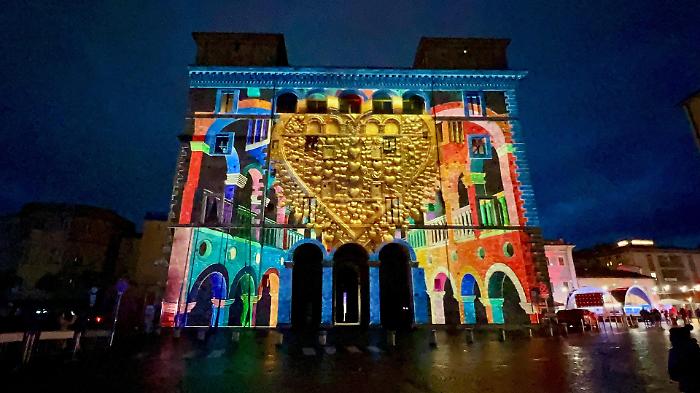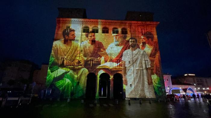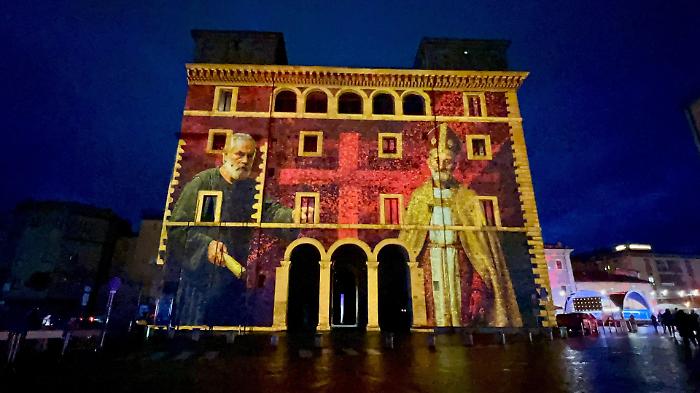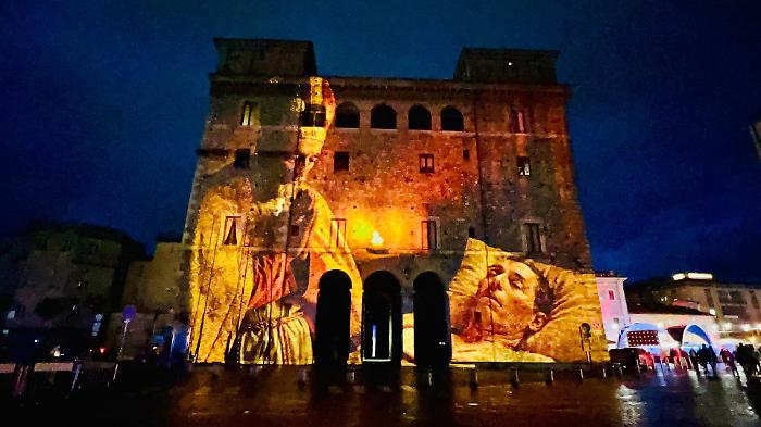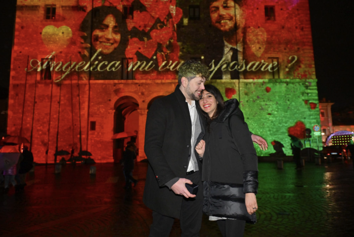 Durante la proiezione inaugurale delle 18, mentre le luci disegnavano prospettive e scenari sulla pietra di Palazzo Spada, un giovane ha deciso di rendere ancora più speciale la serata inginocchiandosi davanti alla propria compagna e chiedendole di sposarlo. La risposta, tra emozione e sorpresa, ha trasformato lo spettacolo in un momento autentico e partecipato, con il pubblico che ha accompagnato la scena con un lungo applauso.
