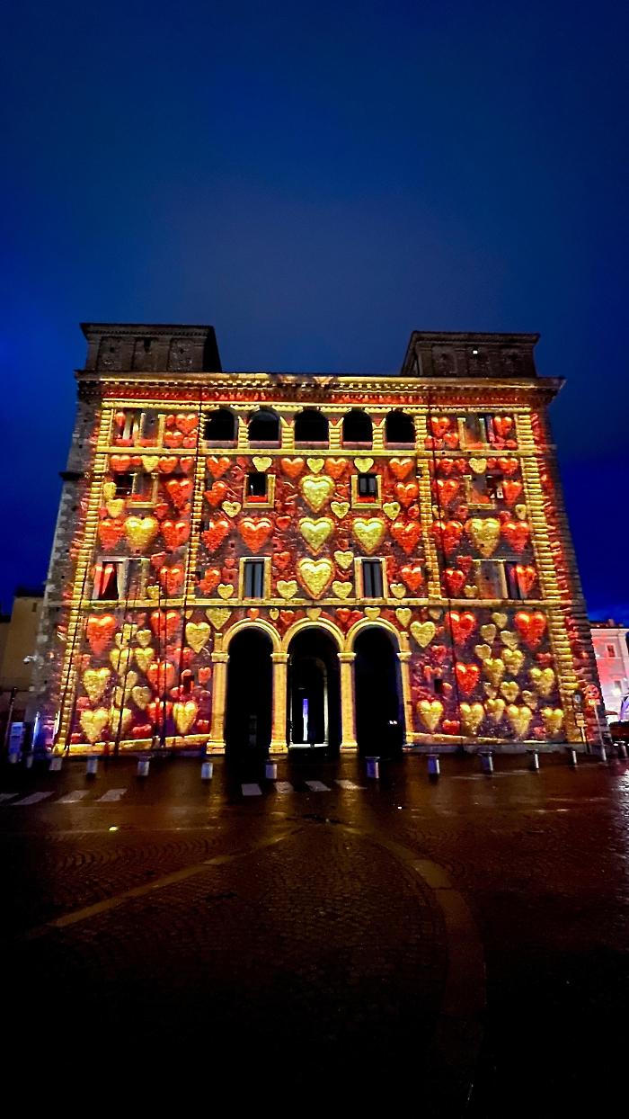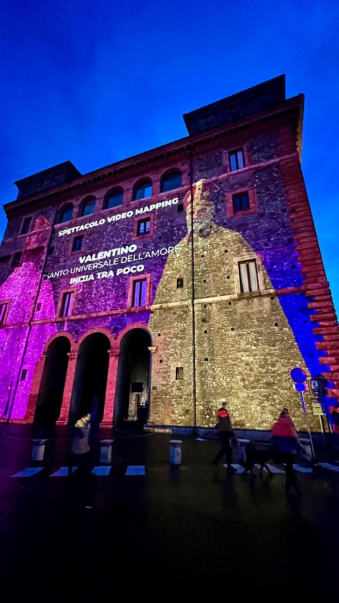 La performance, realizzata dalla società ternana Euromedia in occasione della festa di San Valentino, ha trasformato la facciata del palazzo comunale in una superficie viva, attraversata da immagini, colori ed effetti tridimensionali capaci di raccontare la storia cittadina e i suoi personaggi illustri. Un intreccio tra passato e presente, tecnologia e tradizione, pensato per celebrare non solo il patrono degli innamorati ma anche il legame profondo con la città.