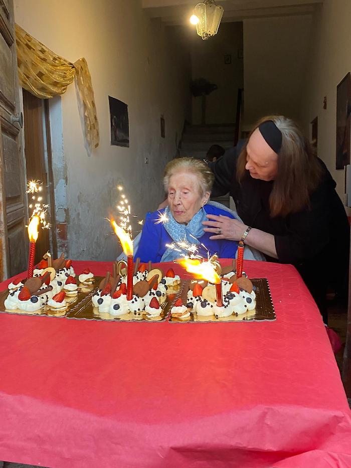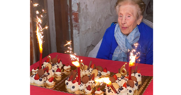I 106 anni di Lidia: torta e candeline nel giorno della festa della mamma con figli, nipoti, pronipoti e badante. Nella sua vita 10 Papi