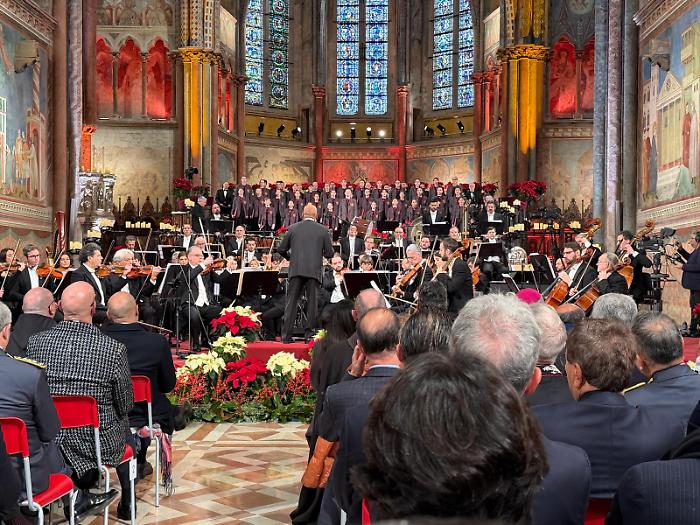 Il Concerto di Natale nella Basilica di San Francesco in Assisi è un evento realizzato in collaborazione con Rai Cultura, con il patrocinio della Presidenza del Consiglio dei Ministri e della Regione Umbria e con il sostegno di Intesa Sanpaolo. L’addobbo floreale è offerto dalla Città di Viareggio.