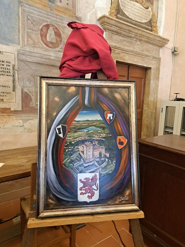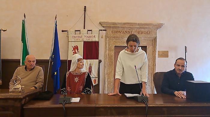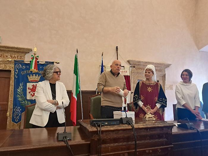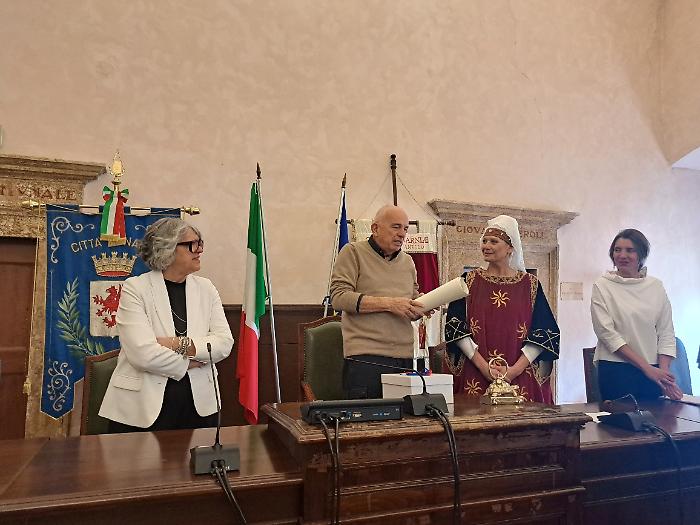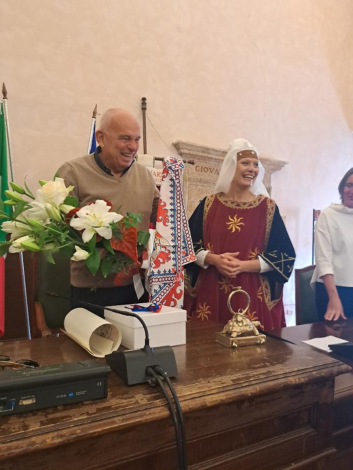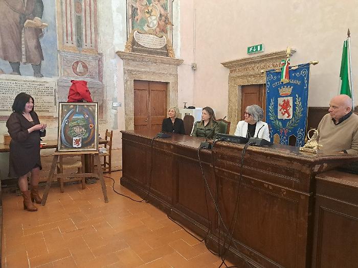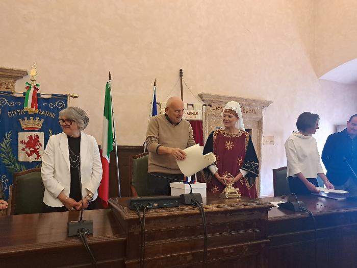 Per ringraziare il maestro Raspini, il Comune ha donato una ceramica, un dipinto ed anche il fazzoletto del gruppo Sbandieratori di Narni, che hanno salutato la cerimonia schierandosi ai piedi del palazzo comunale.