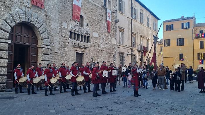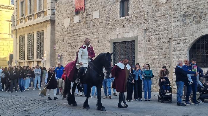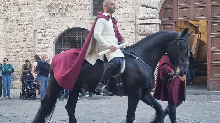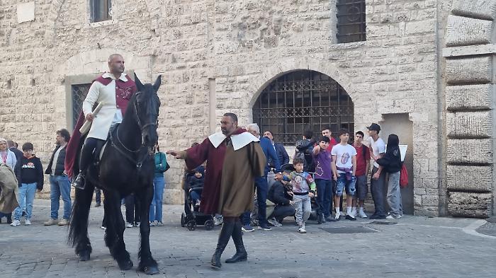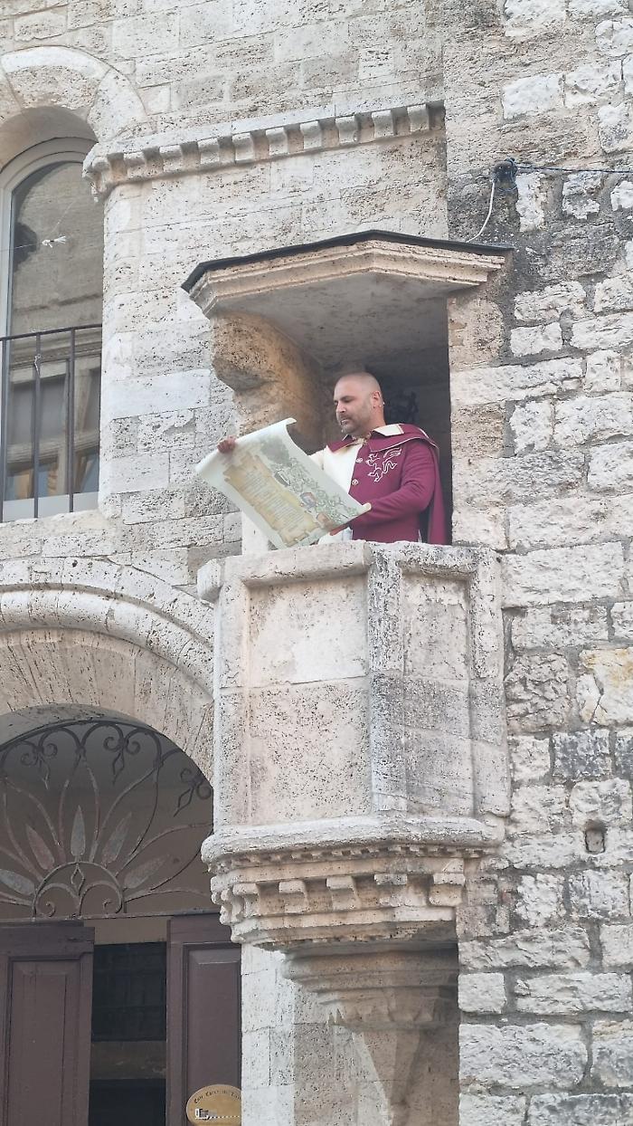 Dalla loggia dei Priori, l’antico bando è risuonato lungo le vie cittadine, dando ufficialmente il via alla festa, mentre il banditore, a cavallo, ha raggiunto i terzieri per consegnare l’annuncio, rinnovando una tradizione capace di coinvolgere residenti e visitatori in un racconto collettivo che unisce storia e tradizione. La giornata è continuata con l’inaugurazione di “Ritratti”, mostra di Eleonora Sernicola, con l’esibizione dei piccoli tamburini di Mezule, Fraporta e Santa Maria ed infine con lo spettacolo a cura del Teatro dell’Aleph “Parata Giullaresca”.