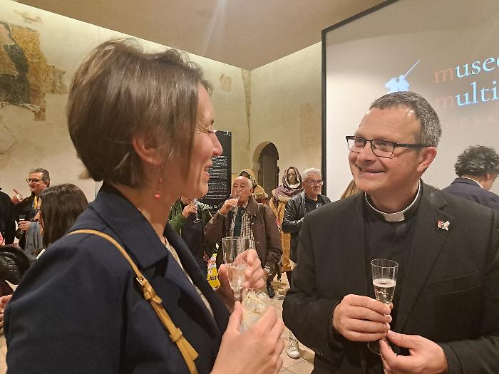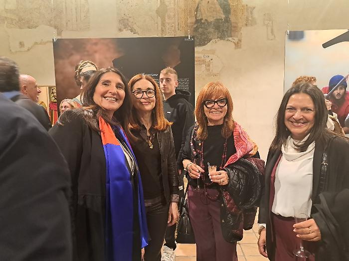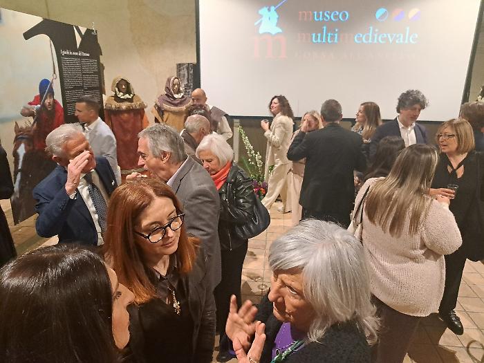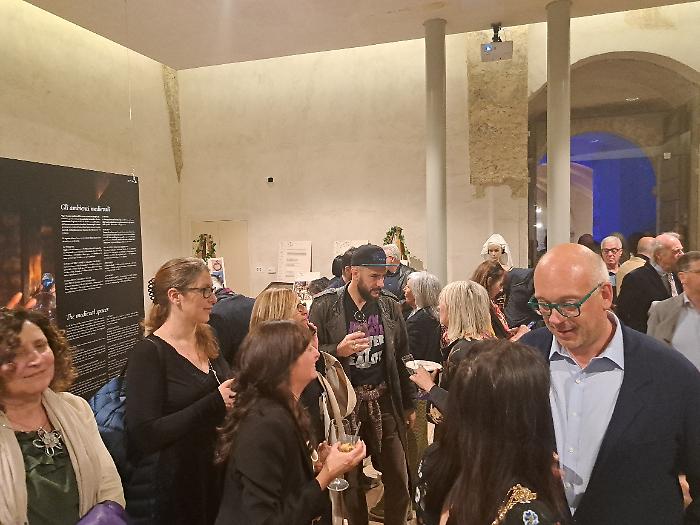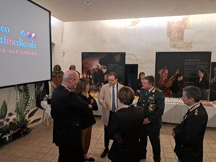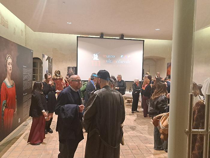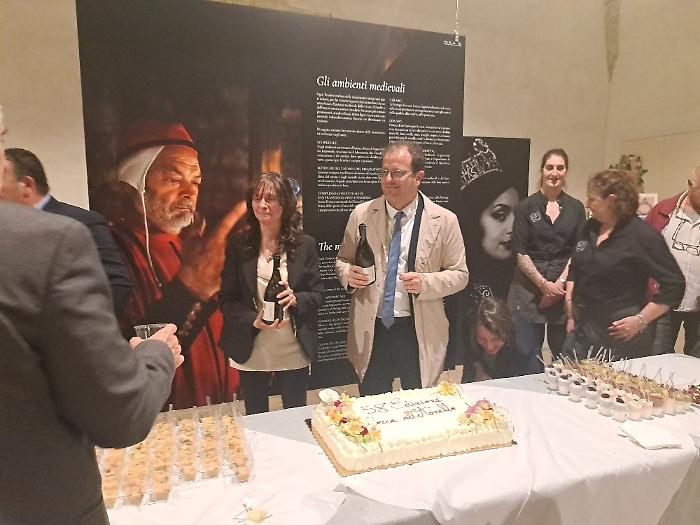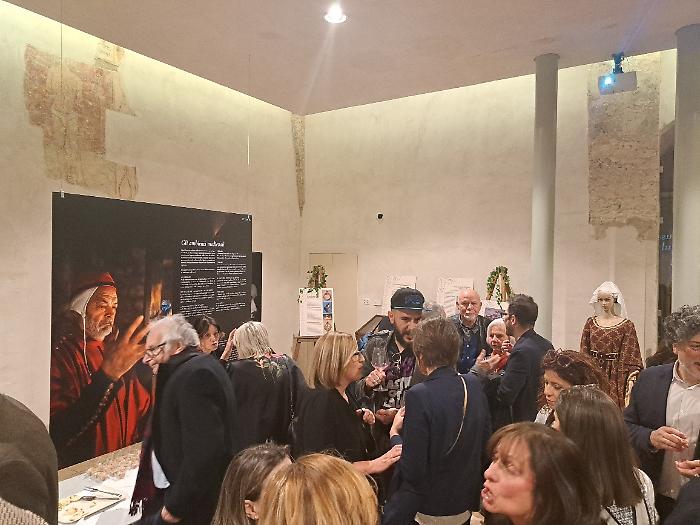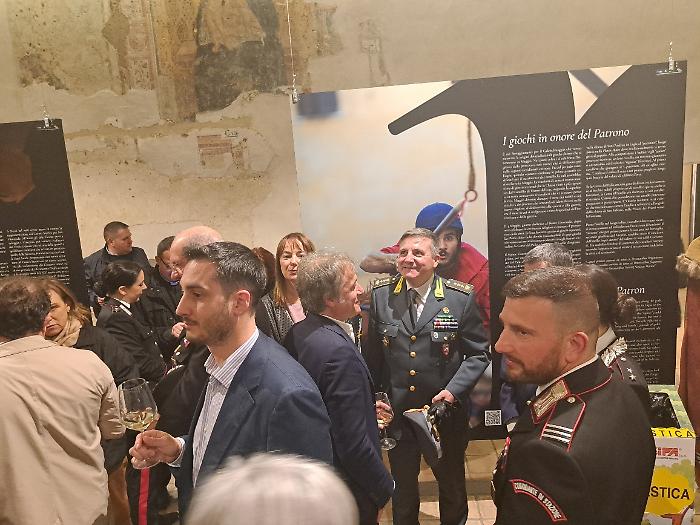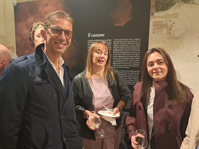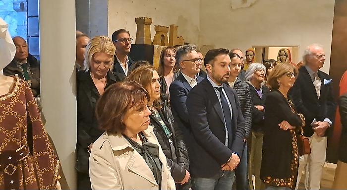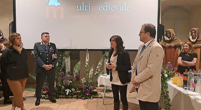 Poi è stata la volta di Patrizia Nannini, presidente dell'Associazione Corsa all'Anello: "Oggi (venerdì 24 aprile) veniamo da quattro inaugurazioni e una presentazione, ognuna delle quali rappresenta un aspetto imprescindibile di questa festa. Il primo, fondamentale, è che per noi la Corsa all'Anello è storia, identità culturale e un momento in cui produciamo cultura. A Fraporta infatti abbiamo inaugurato un crocifisso ligneo fatto interamente dal terziere. E questo testimonia il nostro lavoro, che è quello di ricercare le fonti, ritrovare la storia, approfondirla e metterla in pratica. Poi siamo stati all'inaugurazione della mostra collettiva di arte contemporanea 'Tracce', e questo rappresenta il mettere insieme la nostra storia con la modernità. Poi la mostra fotografica dedicata a Emanuele Squizza, un personaggio che purtroppo ci ha lasciato, che testimonia come la Corsa all'Anello sia socialità: una festa nella quale si fondono legami che ci fanno davvero diventare una famiglia. E poi la presentazione del Festival del Medioevo di settembre, che è il nostro momento culturale per eccellenza, è il momento che ci fa formare i nostri 'rievocatori'. La Corsa all'Anello è forse l'unica in Italia che fa questo, con il supporto di straordinari esperti".