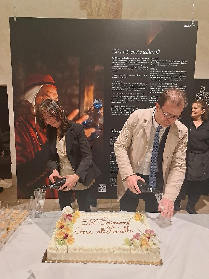 "Un'edizione - ha sottolineato Lucarelli - che abbiamo deciso di dedicare a San Giovenale (nel 1650° anno dalla morte) e a Giovanni Boccaccio (650° anno dalla morte), un Boccaccio che ci ricorda un Medioevo vivo, vivace, fatto di volti, di intelligenza e anche di contraddizione. Ed è quel Medioevo che cerchiamo di raccontare ogni anno con la nostra Corsa all'Anello".