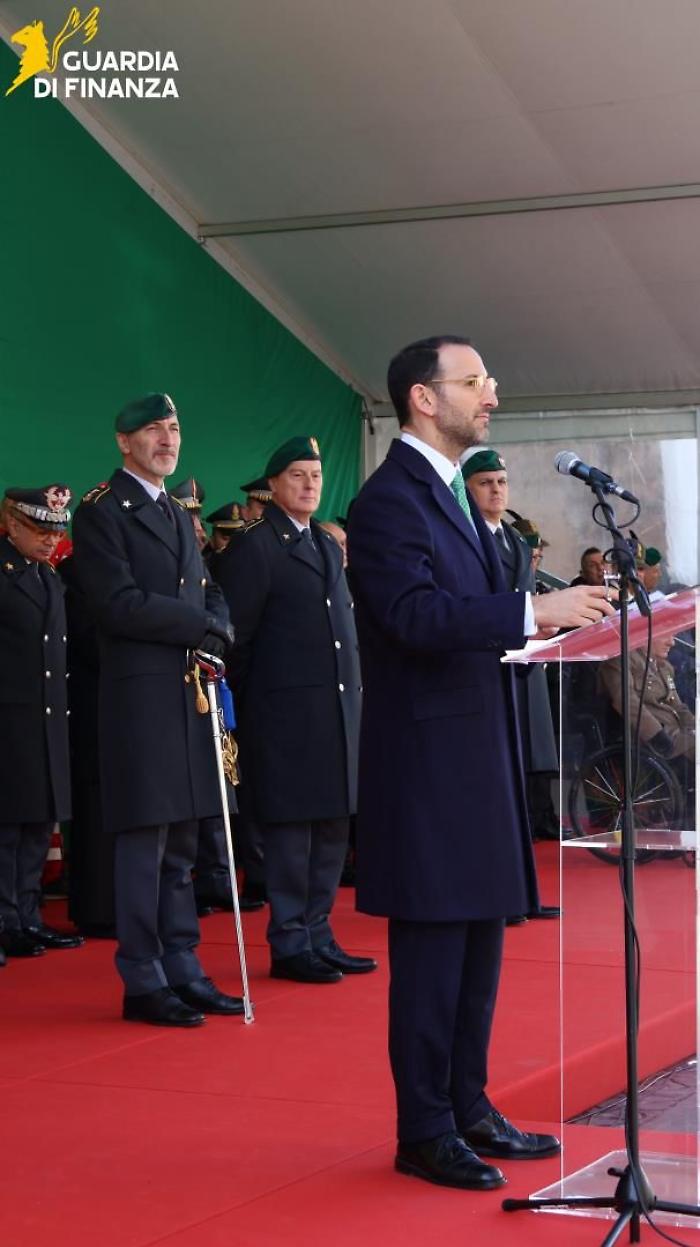 A presenziare l'onorevole Federico Freni, sottosegretario di Stato per l’Economia e le Finanze, il generale di Corpo d’Armata Vito Augelli, ispettore per gli Istituti di Istruzione, il generale di Divisione Marco Lainati, comandante della Legione Allievi. Dopo l’iconico “Lo giuro!” gridato all’unisono degli allievi, sono state consegnate le Fiamme ai primi tre classificati nella graduatoria di merito, prima di veder apporre il simbolo distintivo di appartenenza al Corpo anche agli altri corsisti.