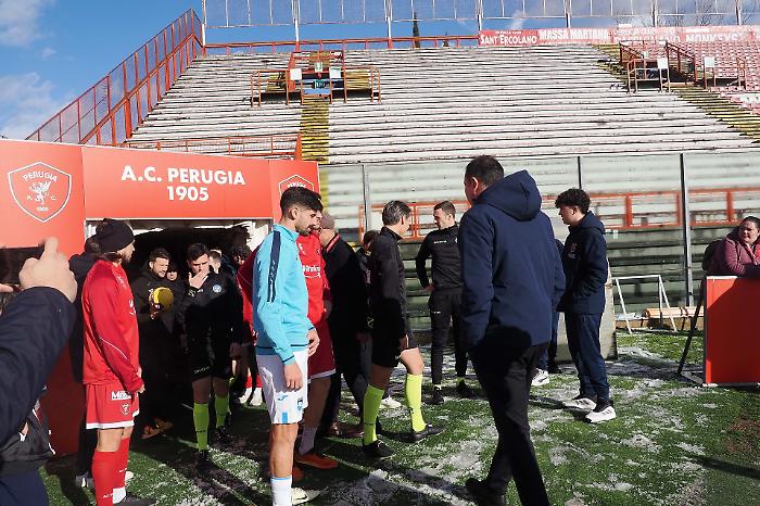 La violenta grandinata che ha travolto la città di Perugia ha quasi fatto slittare il fischio d'inizio della partita del campionato di Serie C Perugia-Pescara. Il nubifragio ha ricoperto di bianco non solo strade e tetti della case dei quartieri limitrofi all'acropoli ma, ovviamente, anche il prato dello stadio Renato Curi dove era in programma il fischio d'inizio alle ore 15.