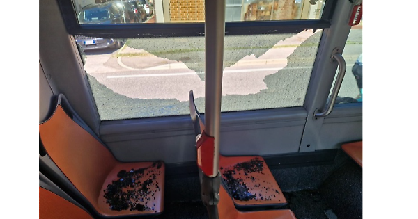 Vetro in frantumi su un autobus della linea VAS che collega le scuole Vasari di Arezzo, nella tarda mattinata di oggi, sabato 20 settembre, intorno alle 12.55. Non si registrano feriti tra i passeggeri a bordo.