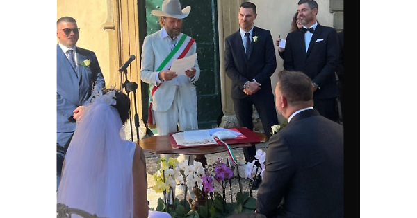 Per poter unire con il rito civile Emiliano e Martina, Lorenzo Cherubini ha ricevuto la speciale delega da parte del sindaco Luciano Meoni. Con cappello da cowboy, lascia tricolore, vestito di bianco, Jovanotti ha unito i due sposi. Segatori, di Tivoli, è molto noto nel mondo della musica. E' assistente personale del cantante, anche autista e guardia del corpo, noto come "Il comandante" per il suo ruolo centrale nello staff dell'artista. Emiliano Segatori - che collabora anche con Ferro e Raf (assente perché impegnato alla serata per Pino Daniele in diretta su Raiuno) - accompagna Jovanotti in tour e in altre attività di Lorenzo.