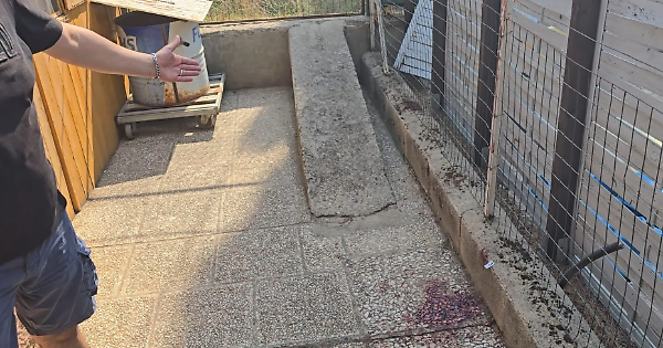 La macchia di sangue rimasta a terra nel giardino di casa (foto Migliosi)