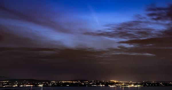 La foto è stata scattata alle ore 19.14. Questa volta la discesa della cometa è stata visibile per pochi istanti, poi è "è caduta dietro il nero sipario delle nuvole" che sovrastavano l'isola Polvese e la città di Castiglione del Lago, spiega l'autore della foto.