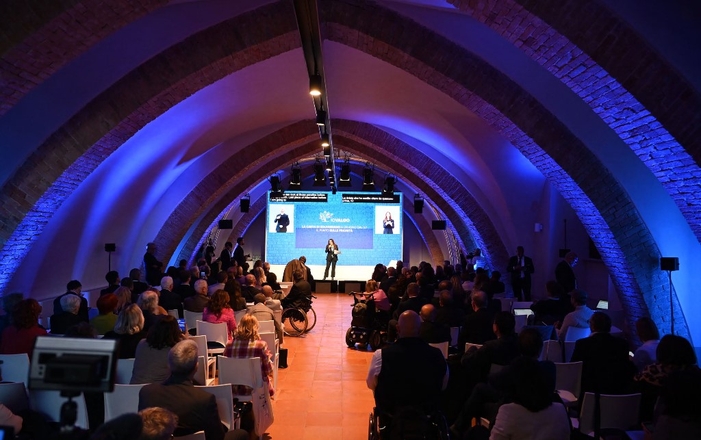 Via poi al primo panel, moderato dal direttore del Corriere dell’Umbria e del Gruppo Corriere Sergio Casagrande (“la Carta di Solfagnano ha indicato la strada, ora tocca noi continuare a percorrerla” ha sottolineato) sulle priorità della Carta e l’inclusione come tema prioritario nelle agende politiche di tutti i Paesi. Sono intervenuti Antonio Caponetto (capo di gabinetto del ministro per le Disabilità) che ha dettagliato il bando Vita e opportunità che è “coerente con la Carta, perché si parla di autodeterminazione ed è rivolto a enti di terzo settore per progetti che riguardano inclusione lavorativa, dimensione abitativa, tempo ricreativo e sport. Ha caratteri innovativi e originali con un’importante dotazione economica di 370 milioni e una linea specifica per bambini e giovani sino a 22 anni”. Il tecnico esperto Claudia Moneta ha spiegato la Carta, i suoi principi e come è nata, “parliamo di un atto di indirizzo, senza valore di legge, che i Paesi del G7 hanno voluto condividere. Al testo si è arrivati dopo un confronto tecnico tra i rappresentanti dei Paesi. La Carta spiega le necessita di ampliare la collaborazione tra Stati coinvolgendo le persone con disabilità, le loro famiglie e le organizzazioni che le rappresentano”. Quindi, da remoto, l’altro tecnico esperto Gianfranco De Robertis ha parlato di riforma e sperimentazione che si basano su “tre direttrici: formazione, sperimentazione, supporto e accompagnamento dei territori. Dove è partita la sperimentazione c’è dialogo e si iniziano a realizzare percorsi di vita inclusivi. La macchina è stata messa in moto, ora bisogna accelerare” ha chiosato. Maurizio Borgo (presidente Autorità garante nazionale dei diritti delle persone con disabilità), ha spiegato il suo ruolo e come avviene la tutela dei diritti delle persone con disabilità, “l’Autorità è un ponte tra i cittadini, le persone con disabilità e le istituzioni, ma ha anche un ruolo di promozione, tutela, garanzia e monitoraggio di tutto quello che avviene ai vari livelli dei principi della convenzione Onu e della Carta di Solfagnano”. Pier Luigi Zamporlini (consigliere per le relazioni internazionali) ha raccontato le forme di cooperazione del ministero, “il G7 ha potenziato le attività internazionali del ministro, l’agenda è vivace, brillante e multilaterale” ricordando le presenze a New York e Ginevra. Suor Veronica Donatello (responsabile del servizio nazionale per la pastorale delle persone con disabilità, CEI) ha raccontato gli eventi inclusivi inglobati all’interno dell’anno giubilare, “seguiamo la direttiva di Papa Francesco, lavorare insieme”. A conclusione la testimonianza di Massimo Isidori (presidente regionale Unione italiana dei ciechi e degli ipovedenti), “io c’ero alla cerimonia inaugurale del G7 ad Assisi, un’esperienza unica e un’occasione importante per far conoscere la disabilità all’opinione pubblica”.