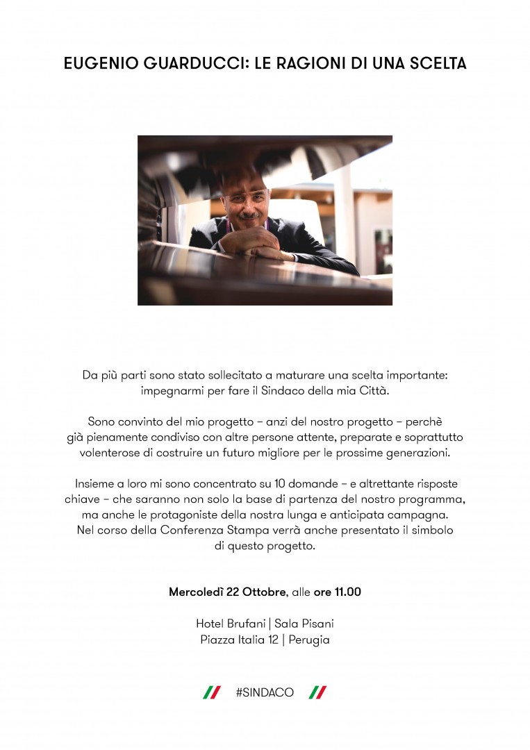 Lui insiste, però, e chiarisce: “No, è una cosa seria, spiegherò le ragioni della scelta”. Ma niente di più. Insomma, bisogna aspettare. Del resto, il suo impegno nell’amministrazione comunale non è una novità: ricordiamo che nel 2016 fu assessore alla Cultura del Comune di Assisi, incarico che lasciò due anni dopo con tanto di dimissioni. Prima ancora, nel 2013, il suo nome figurava come capolista alla Camera per il movimento politico dell’economista Oscar Giannino, Fermare il Declino, progetto naufragato presto a causa del caso del master fasullo dell’economista.