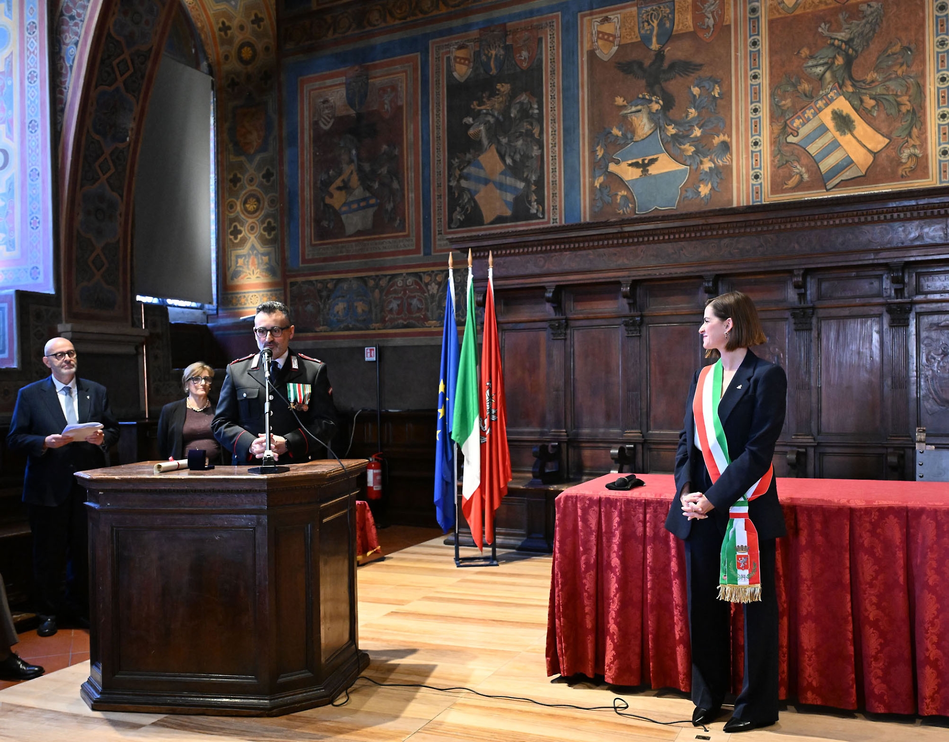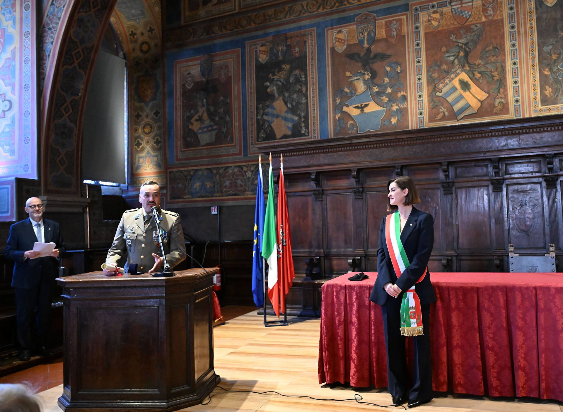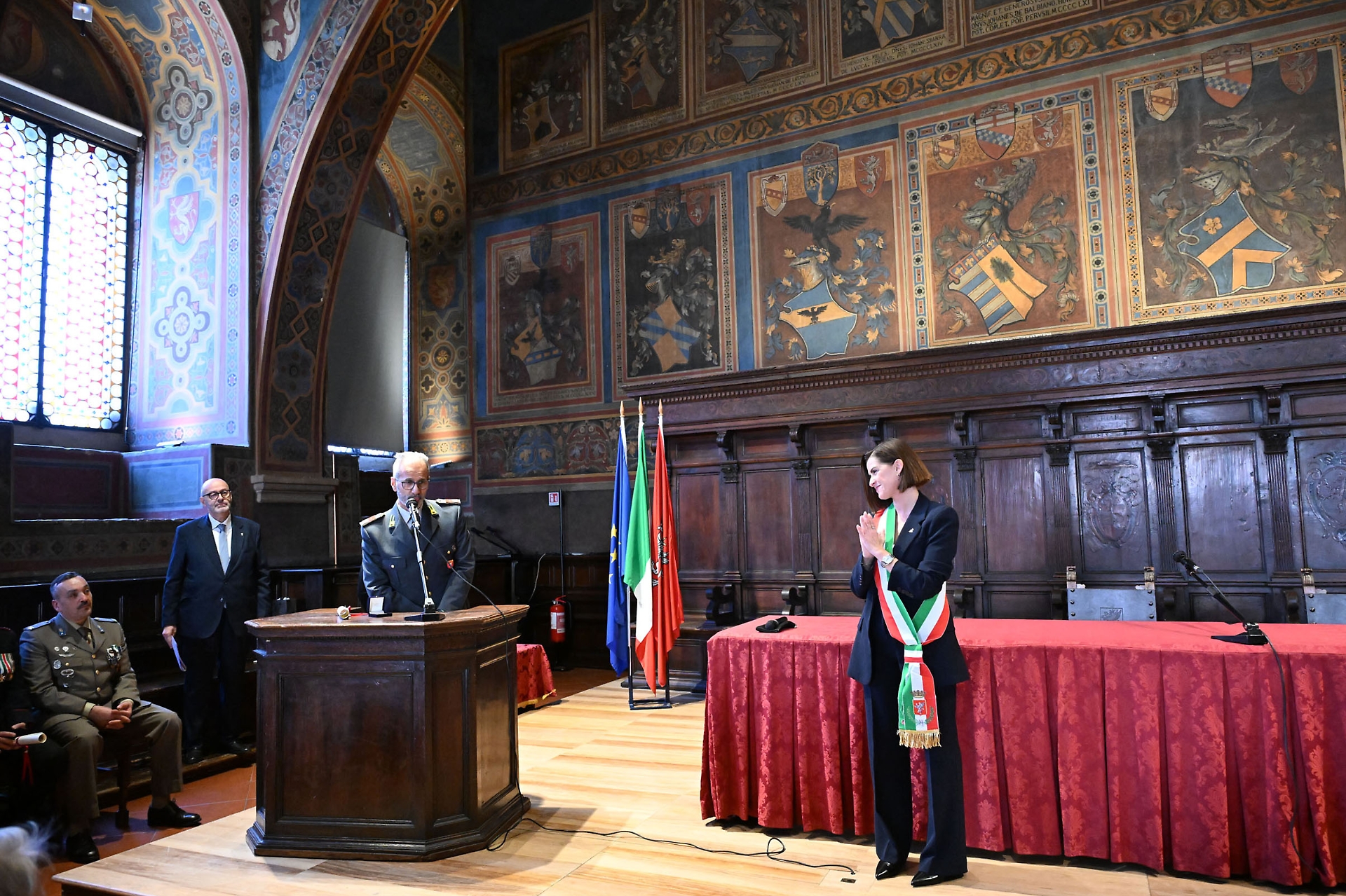 "È un orgoglio e una grande emozione poter dare il benvenuto in una sala che rappresenta il cuore pulsante di secoli di vita civile e politica della nostra comunità - ha detto la sindaca Ferdinandi -. Celebrazioni come queste non devono essere una ricorrenza stanca, ma un’occasione di memoria viva, uno stimolo per il presente e per le future generazioni".
