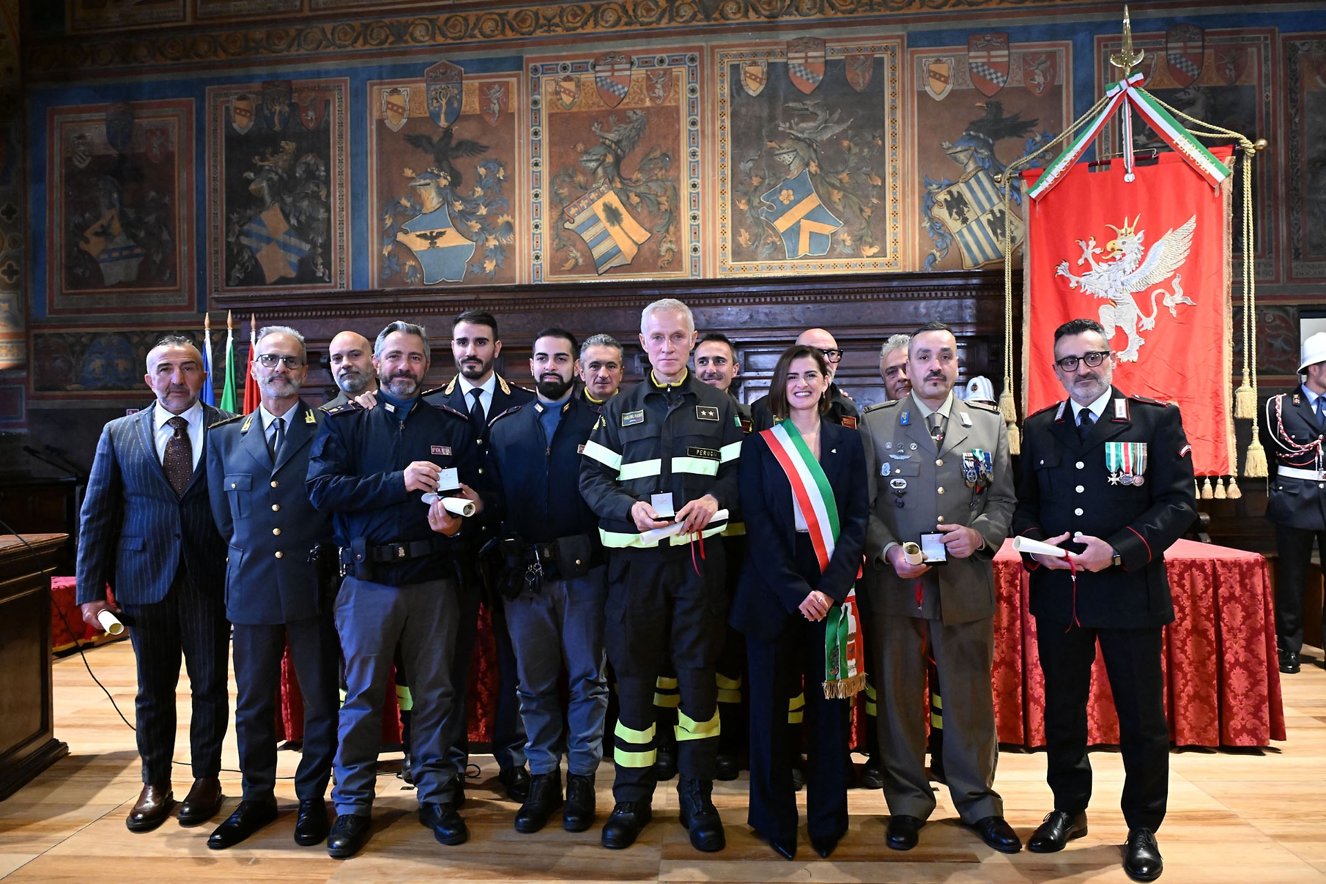 È stato consegnato oggi, martedì 4 novembre, il premio biennale Città di Perugia - istituito nel 1991 e assegnato dal Comune a uffici e persone appartenenti a Esercito, Carabinieri, Guardia di finanza, Polizia di stato, Polizia penitenziaria e Vigili del fuoco. La cerimonia si è svolta presso la sala dei Notari nell'ambito delle celebrazioni per la giornata dell'unità nazionale e delle forze armate.