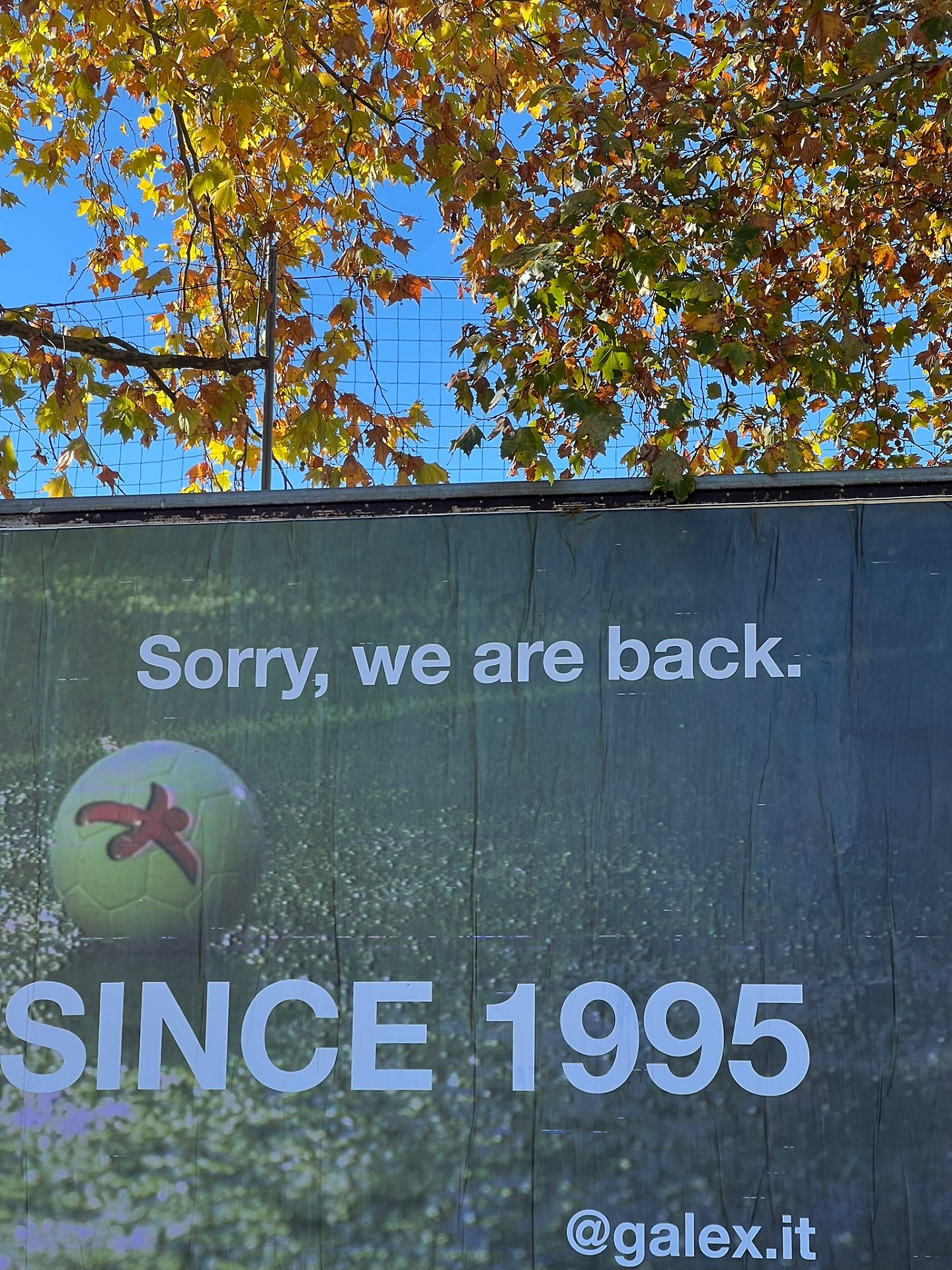 Galex è tornata. Dopo anni di buio è riapparsa la sagoma che ha fatto la storia dell'abbigliamento sportivo a Perugia e in tutta Italia. "Sorry, we are back", si legge nelle poche righe dei vari cartelloni pubblicitari sparsi per la città, che rimandano al sito (ancora in fase di costruzione) e alla neonata pagina Instagram.