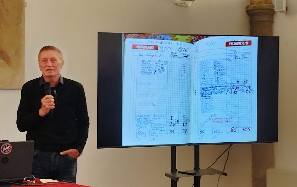 Gianfranco Angeloni, presidente di Perugia Meteo, mostra il suo diario meteorologico di 50 anni fa