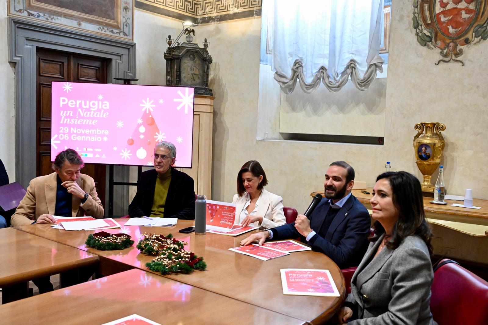 Il Natale si avvicina e il Comune ha svelato le carte presentando tutti gli eventi di avvicinamento al 25 dicembre, Capodanno ed Epifania. Venerdì 21 novembre alla sala Rossa di Palazzo dei Priori si è tenuta la conferenza stampa con la sindaca Vittoria Ferdinandi, gli assessori Andrea Stafisso (commercio), Francesca Tizi (Istruzione) e Fabrizio Croce (turismo, città storica e spettacolo dal vivo), ed il presidente del Consorzio Perugia in Centro Paolo Mariotti.