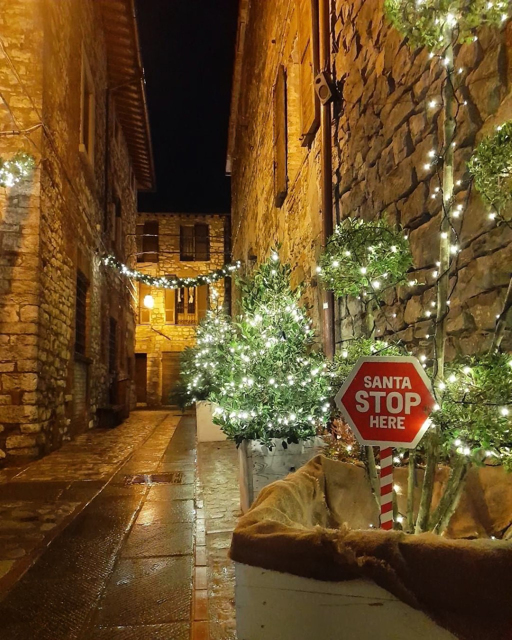 Monte Castello di Vibio si trasforma in un vero e proprio paese del Natale. Strade, piazze e vicoli si accenderanno di luci e magia: la Casa di Babbo Natale, la tana del Grinch, la Casa della Befana con profumi di dolci e carbone buono. Cento alberi di Natale in strada invitano a una caccia al tesoro luminosa. Spettacoli: trampolieri, un piccolo circo itinerante, una parata Disney, zampognari e street band. Laboratori creativi, magia e la tradizionale discesa della Befana dalla Torre di Porta di Maggio.