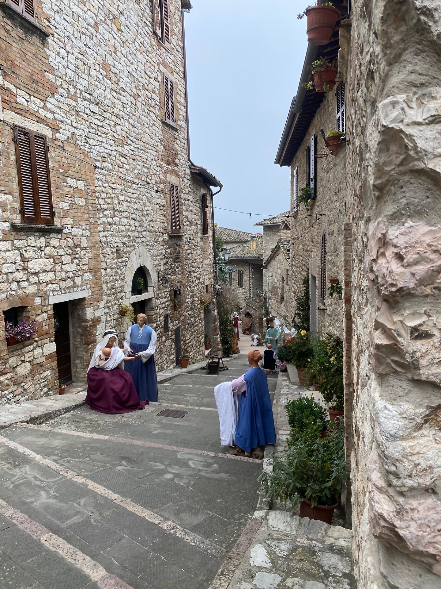 Dal 26 al 28 dicembre le strade di Bevagna raccontano la Natività ispirandosi al film di Franco Zeffirelli “Fratello Sole e Sorella Luna”: alcune scene furono girate proprio a Bevagna, infatti gli attori indossano gli abiti originali del film, disegnati dal premio Oscar Danilo Donati e oggi conservati da Gelsi Costumi d’Arte (a Gualdo Tadino). In questa ambientazione suggestiva lo spettatore è guidato da un “Francesco” che lo accompagna tra mercanti, artigiani, locande, botteghe medievali, fino alla scena finale, la nascita di Gesù.