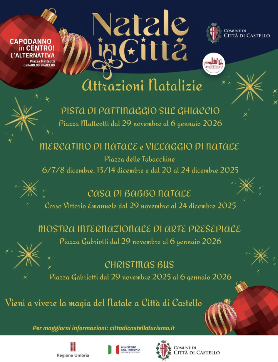 Il taglio del nastro del Villaggio di Natale è in programma sabato 6 dicembre alle 11.30, con il sindaco Luca Secondi e l’assessore al turismo e commercio Letizia Guerri. Proprio l’assessore parla di "un’offerta straordinariamente ampia, costruita insieme alla comunità e per la comunità, capace di coinvolgere tutte le età e valorizzare i luoghi più cari ai tifernati". Quest’anno, per la prima volta, arriverà anche una segnaletica dedicata che guiderà i visitatori tra piazze, vie e iniziative, oltre al ritorno della musica in filodiffusione. Un Natale, insomma, che punta a unire tradizione locale, atmosfera condivisa e un calendario ricco di appuntamenti pensati per accompagnare residenti e turisti per tutto il periodo delle festività.