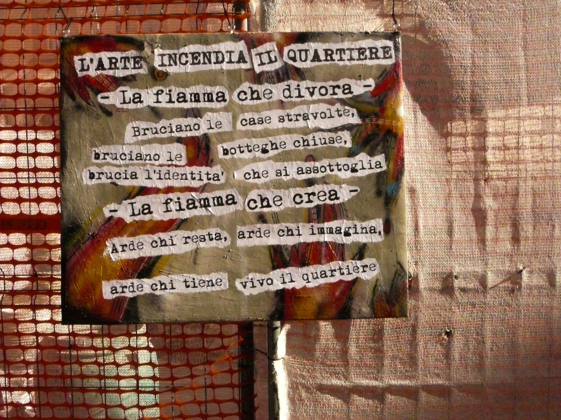 Un'installazione artistica e una lettera aperta agli amministratori della città per esprimere la protesta di un quartiere che vuole, pretende, un futuro in linea con la sua storia. È quanto si sta facendo in Corso Garibaldi ad opera del collettivo artistico Espressioni Impressioni e dall'associazione Assogaribaldi Aps (Progetto Corso Garibaldi District), composta da esercenti e residenti del quartiere. Insieme hanno presentato un'installazione artistica lungo la via, in collaborazione con l'ultima giornata del Festival T'Immagini, in segno di protesta e di denuncia delle problematiche non risolte del Borgo che vanno affrontate nonostante il lungo lavoro di rigenerazione urbana intrapreso dal 2018 e le numerose iniziative realizzate nel corso degli anni.