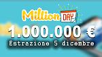 I NUMERI VINCENTI MILLION DAY DI IERI VENERDI' 5 DICEMBRE