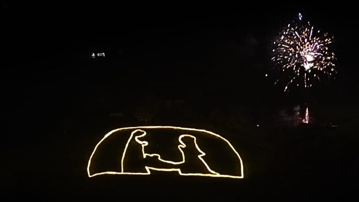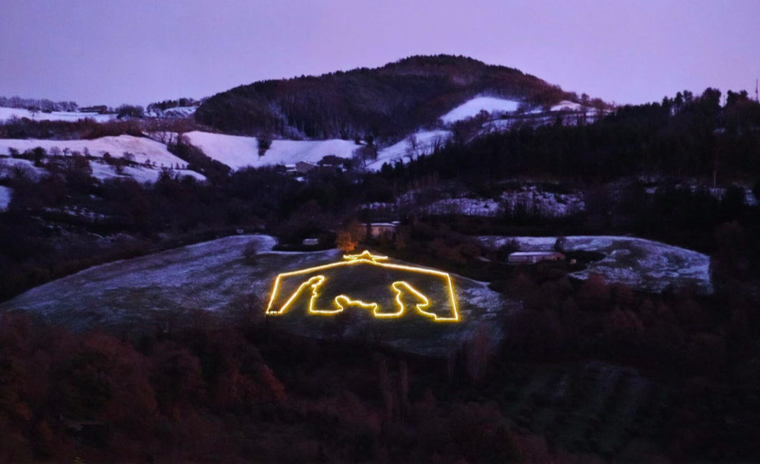 E così nasce l'idea di creare una Natività: "E mentre pensavano inizialmente di realizzare delle statue - o qualcosa del genere - con legno o altri materiali, hanno avuto l'idea di una natività. E Claudio Ricciolini ha deciso di contattare un suo amico artista: Raffael Bustillos. Così lo hanno raggiunto e gli hanno chiesto: 'Vuoi provare a fare una natività che possiamo poi costruire su un campo con delle luci LED?'. E lui così ha fatto" - ha proseguito de Matteis. Dalla mente di Bustillos prende, quindi, forma la prima installazione, accesa l'8 dicembre 2021 - per un'estensione di 700 metri lineari sul fianco di un'ampia collina.