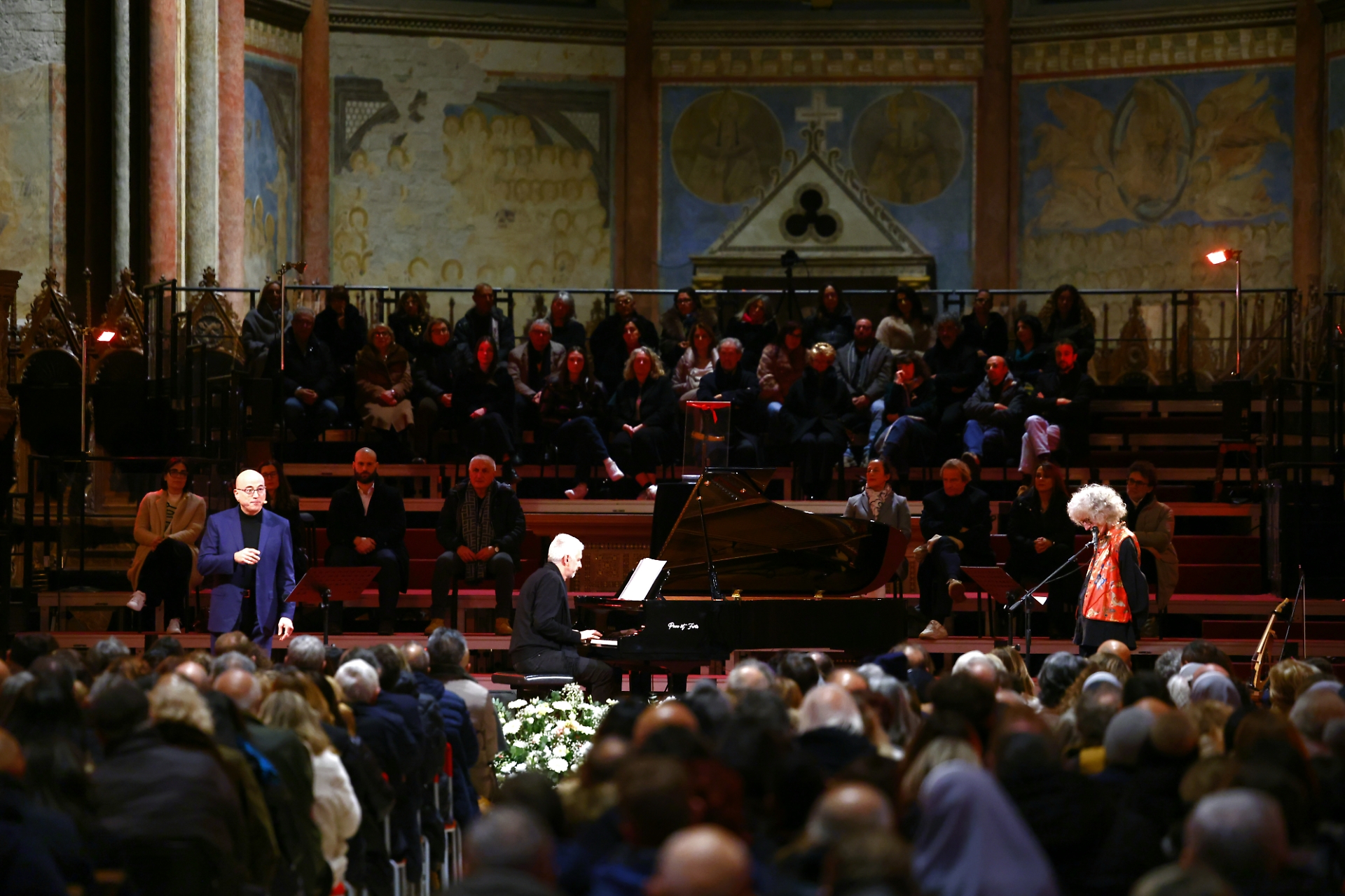 Nel pubblico della Basilica presente anche Jovanotti - al secolo Lorenzo Cherubini -, con alcuni familiari. Fra Marco Moroni - Custode del Sacro Convento -, nel saluto iniziale, ha rivolto al cantante l'invito a tornare nella città serafica nel 2026 in occasione del grande centenario francescano.