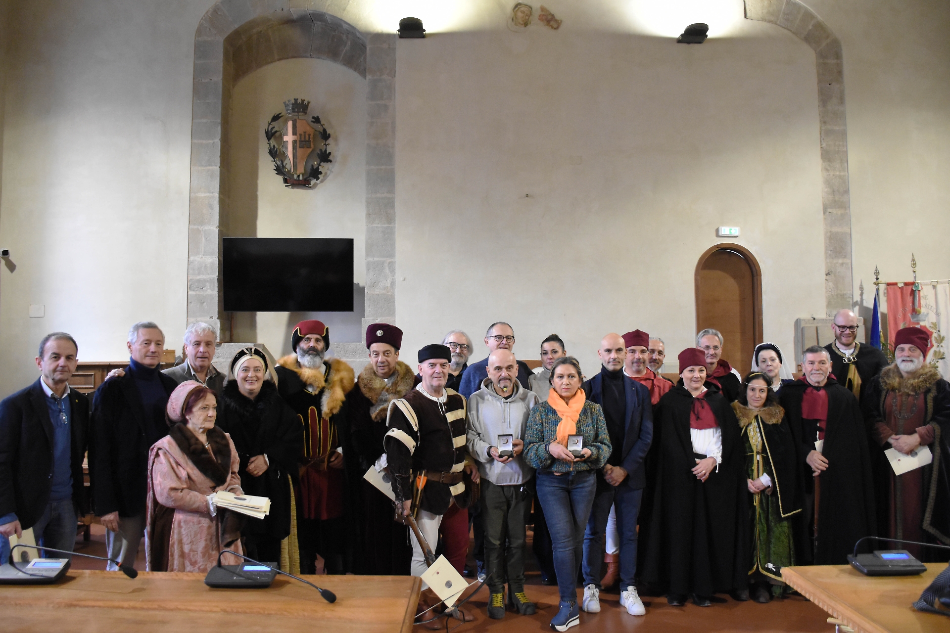 L’iniziativa, alla presenza della Compagnia dei balestrieri di Città di Castello in costume storico, è stata aperta dalla lettura di alcuni passi di un documento datato 25 giugno 1256 con cui “gli uomini di Monte Ruperto decidono di assoggettarsi a Città di Castello giurando di voler osservare i precetti del podestà”.