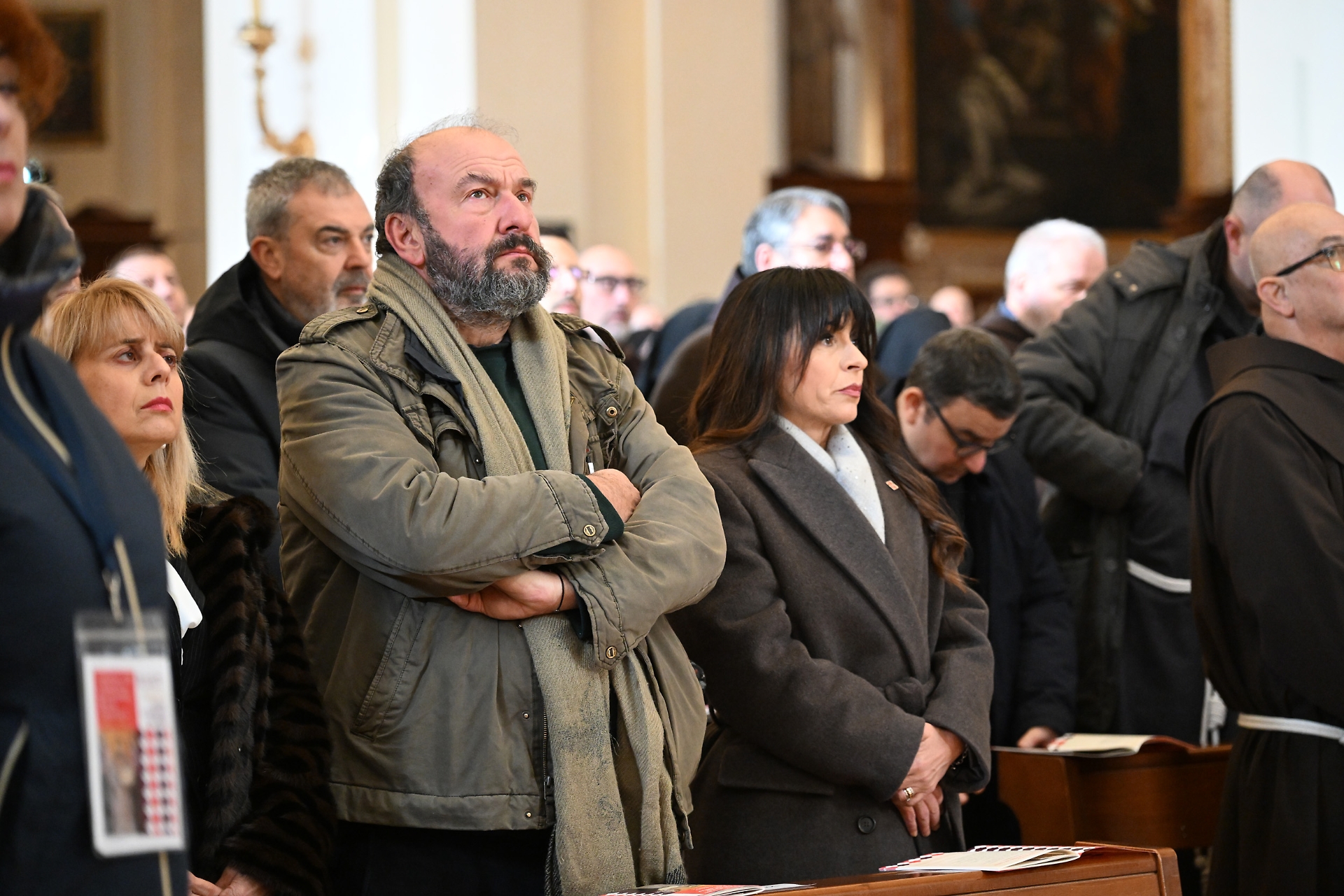 Insieme alla moltitudine di fedeli provenienti da tutto il mondo, erano presenti anche le autorità politiche e numerosi rappresentanti delle istituzioni civili, tra cui la presidente della Regione Umbria, Stefania Proietti, e il presidente del Comitato Nazionale per le celebrazioni dell'ottavo centenario della morte di san Francesco d'Assisi, Davide Rondoni.