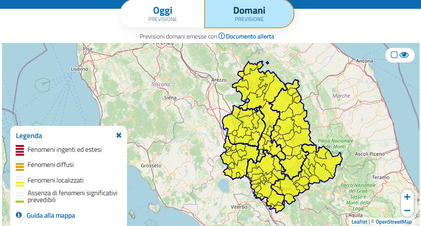 Continua l'allerta meteo gialla in Umbria per rischio ghiaccio. A comunicarlo la protezione civile con un documento valido dalle 13.30 di oggi - domenica 11 gennaio - fino alle 00.00 di martedì 13 gennaio. Nel dettaglio, per la serata di oggi sono previste temperature sotto lo zero.