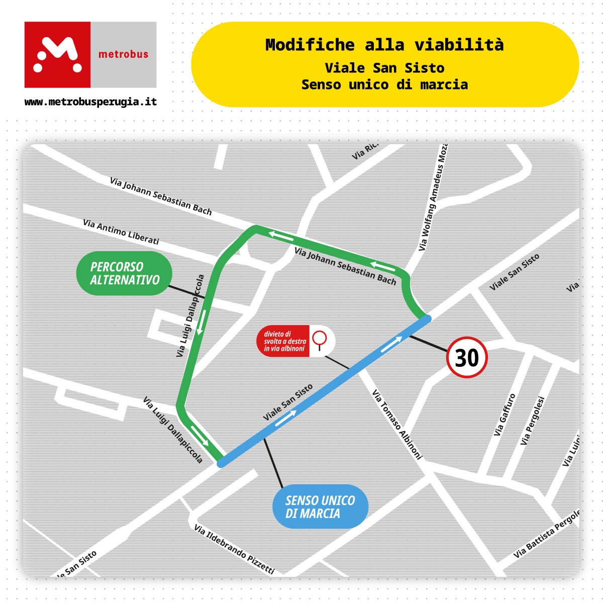 Nel dettaglio, da oggi - mercoledì 14 gennaio - fino a sabato 28 febbraio 2026, sarà chiusa la corsia di immissione su via Tomaso Albinoni per i veicoli provenienti da viale San Sisto, lato Pievaiola verso Perugia. Nello stesso tratto sarà inoltre introdotto l'obbligo di proseguire diritto all'intersezione con via Albinoni e il limite di velocità a 30 km/h.