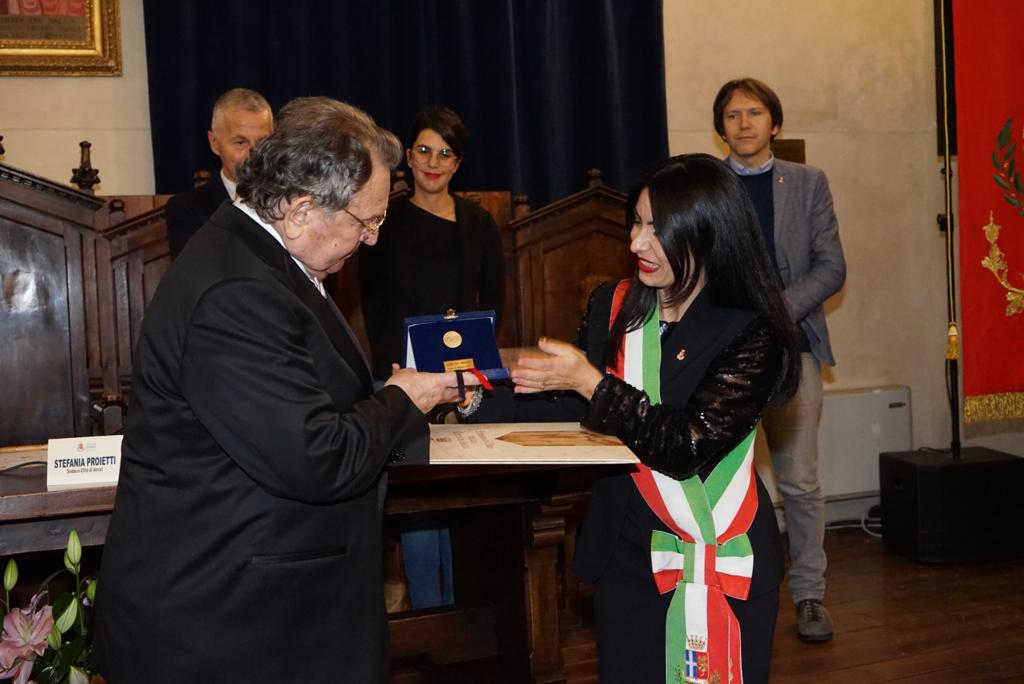 Legatissimo ad Assisi e all’Umbria, Arnaldo Manini ha costruito 64 anni fa una realtà industriale che conta oltre 300 dipendenti e si è distinta per collaborazioni con aziende di altissimo livello. È stato un imprenditore ingegnoso e lungimirante che ha puntato sull’innovazione, tanto è vero che fin dai primi anni ha voluto un centro di ricerca nella sua azienda dove ha trasferito i valori umani, sociali e culturali che hanno caratterizzato la sua vita. La presidente Proietti il 25 novembre 2019, in veste di sindaco di Assisi, consegnò ad Arnaldo Manini lo Stemma D’Oro della Città e accompagnò il conferimento con una laudatio di impatto emotivo anche per il rapporto personale di grande affetto.