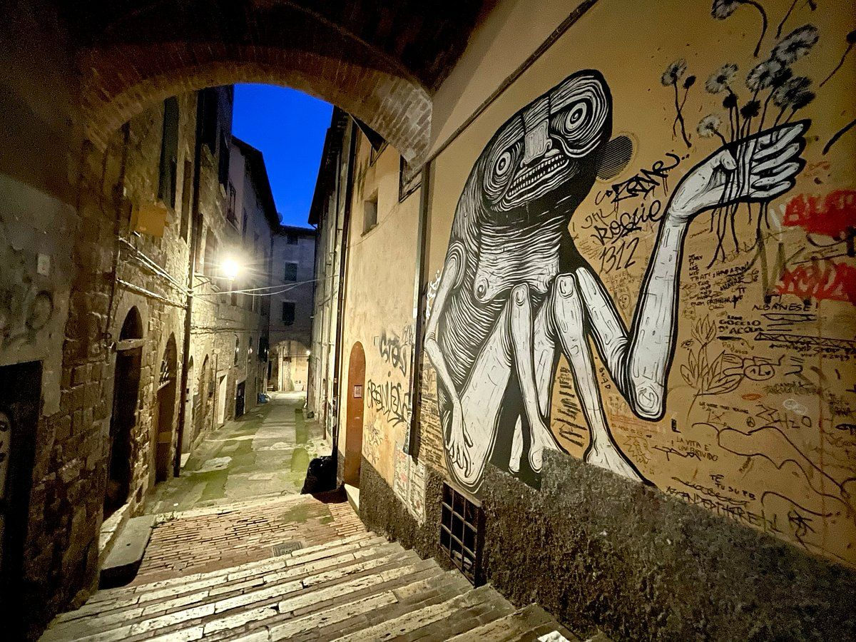 Quella che inganna è Via della Viola, dal nome di un’antica contrada medievale nel Rione di Porta Sole: sembra leggera ma si rivela ripida passo dopo passo. A differenza delle altre salite raccontate finora, questa strada trae forza non tanto dal suo passato, quanto da un presente vivo che l’ha vista protagonista di un processo graduale trasformandosi da una zona defilata e poco attrattiva a uno dei luoghi simbolo di Perugia: una salita abitata, attraversata a tutte le ore, dove la fatica del percorso si intreccia con la socialità.