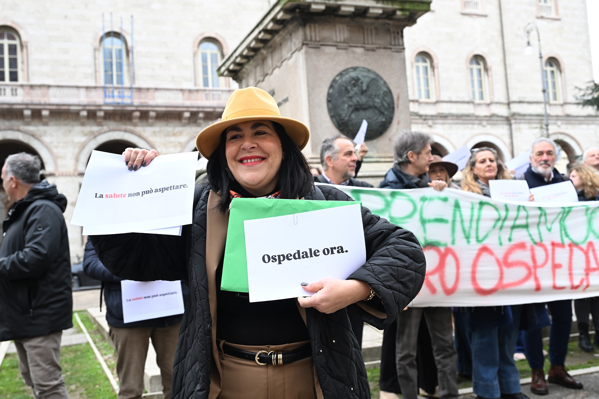 “Stiamo qui a Perugia, sotto le finestre della Regione – ha dichiarato anche la presidente del consiglio comunale, Sara Francescangeli - a rappresentare gli interessi di Terni. Abbiamo sottratto tempo alle nostre famiglie, al nostro lavoro, per dire che Terni ha diritto a una nuova struttura sanitaria, Terni ha il diritto di avere un cronoprogramma, un finanziamento certo, un progetto realizzabile e fattibile. L'attuale governo regionale ha solo confuso le acque con ipotesi fantasmagoriche, che richiedono esborsi economici, oltre 700 milioni, che non sono sostenibili e che equivalgono a non fare nulla. Al momento c'è un caos assoluto sui luoghi e sui tempi. Noi di Ap, con il sindaco in testa, abbiamo detto che ci sono progetti più fattibili, da circa 280 milioni, che possono essere realizzati in tempi accettabili. Su questo versante già è stato fatto passare un anno e mezzo senza fare nulla. Ringrazio tutti gli assessori, tutti i consiglieri comunali, tutti i cittadini che hanno voluto essere presenti, che hanno voluto dar voce alla nostra città che non è seconda a nessuno, che ha diritto ad avere una struttura sanitaria efficiente, moderna, in grado di rispondere ai cittadini e di liberarli dalle ore di attesa al pronto soccorso”.
