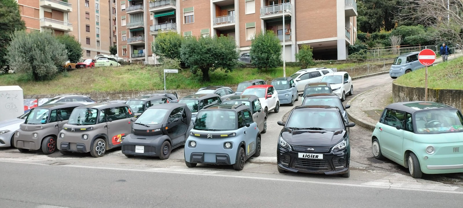 Abbiamo citato l’Alessi come punta dell’iceberg perché tra via del Coppetta e le altre strade laterali, compreso il parcheggio sterrato lungo via Fasani (è la parallela di via d’Andreotto che scende verso Fontivegge) le Minicar, arrivano ad una cifra molto vicina a 90-100 unità al giorno, nel contesto di un liceo con circa 1500 studenti totali. Considerando che i “quadricicli”, questa la definizione del codice della strada, si possono guidare solo dopo i 14 anni e che molti 18enni hanno già auto “adulte” è facile fare i conti e porsi qualche domanda.