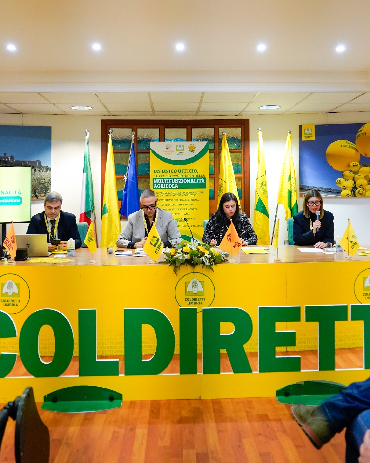 Nel corso della presentazione sono intervenuti Elena Tortoioli, presidente di Terranostra Umbria, l'associazione agrituristica e ambientale di Coldiretti che raggruppa gli agriturismi della rete di Campagna Amica, Elisa Polverini, vicedirettore Coldiretti Umbria e responsabile area organizzazione, promozione, sviluppo e multifunzionalità e Federico Sisti, segretario generale della Camera di Commercio dell'Umbria.