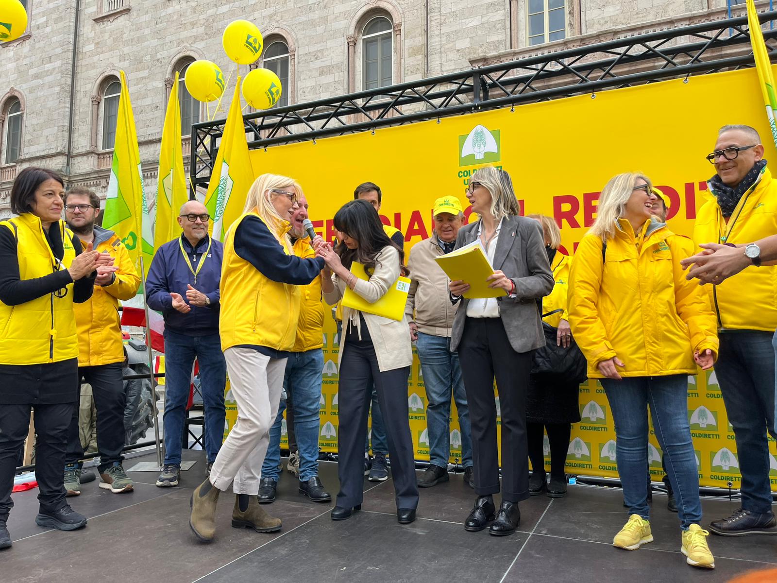 Come ultimo passaggio, Proietti e Meloni hanno ricevuto il documento mobilitativo dalle mani della Presidente di Coldiretti Perugia e di Coldiretti Terni Anna Chiacchierini e Dominga Cotarella.