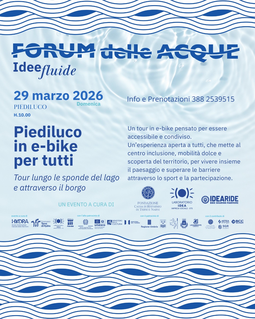 Un tour in e-bike lungo le sponde del lago di Piediluco e attraverso il borgo pensato per essere accessibile e condiviso. Si tratta di Piediluco in e-bike per tutti, un'esperienza a cura di Idea Ride Bike Sharing Marmore in collaborazione con Fondazione Cassa di Risparmio Terni e Narni.