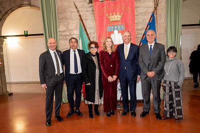 A Gubbio quella del primo aprile 2026 è stata una giornata intensa di emozioni, memoria e prospettive internazionali: ha segnato il ritorno di Ronald P. Spogli, già ambasciatore degli Stati Uniti d’America, profondamente legato alla città per le sue origini familiari (di radici eugubine per parte di padre). Una visita sentita, capace di intrecciare passato e futuro, identità locale e apertura al mondo. La mattinata si è aperta con l’accoglienza ufficiale presso Palazzo Pretorio, dove il sindaco Vittorio Fiorucci ha rivolto un saluto istituzionale carico di significato: “La sua storia rappresenta un esempio autentico di tempra eugubina capace di affermarsi nel mondo. È un orgoglio per la nostra comunità accoglierla oggi qui”. Nel corso della cerimonia sono stati consegnati alcuni doni simbolici: una pergamena su pelle e un piatto in ceramica realizzato dai ragazzi della cooperativa Asad, nell’ambito del progetto Fili di Futuro. Un gesto che ha voluto sottolineare il valore dell’inclusione e della tradizione artigianale locale.