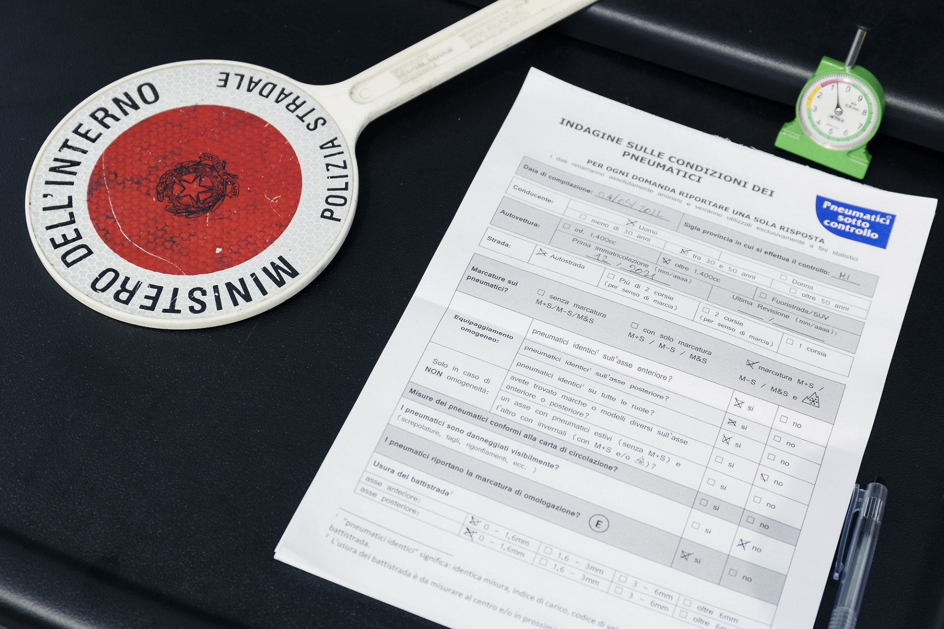 Una particolare attenzione verrà dedicata anche all'omologazione degli pneumatici, alla rispondenza alle caratteristiche riportate sulla carta di circolazione, all'omogeneità degli pneumatici montati sugli stessi assi e sull'idoneità dell'equipaggiamento stagionale in relazione al periodo dell'anno.Le pattuglie coinvolte hanno partecipato ad una specifica sessione formativa di approfondimento tecnico e sono state dotate di uno spessimetro, strumento omologato che consente di rilevare correttamente la profondità del battistrada.