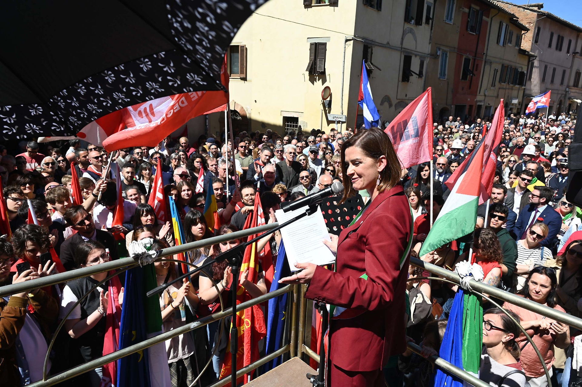 In Borgo XX Giugno la cerimonia si è svolta dinanzi alla lapide che ricorda i patrioti fucilati dai nazifascisti. Dopo l’omaggio al monumento, hanno preso la parola dal palco dapprima la partigiana Mirella Alloisio, a cui lo scorso 11 novembre 2025 la città di Perugia ha conferito la cittadinanza onoraria, e poi la sindaca Vittoria Ferdinandi. “Per me – quella di oggi – è la data più importante del nostro calendario. Se siamo qui tutti insieme, infatti, è perché c’è stato un 25 aprile che ha stabilito che la democrazia deve essere la nostra guida. Vedo qui oggi tanti giovani: vuol dire che la nostra Repubblica ha un avvenire”.