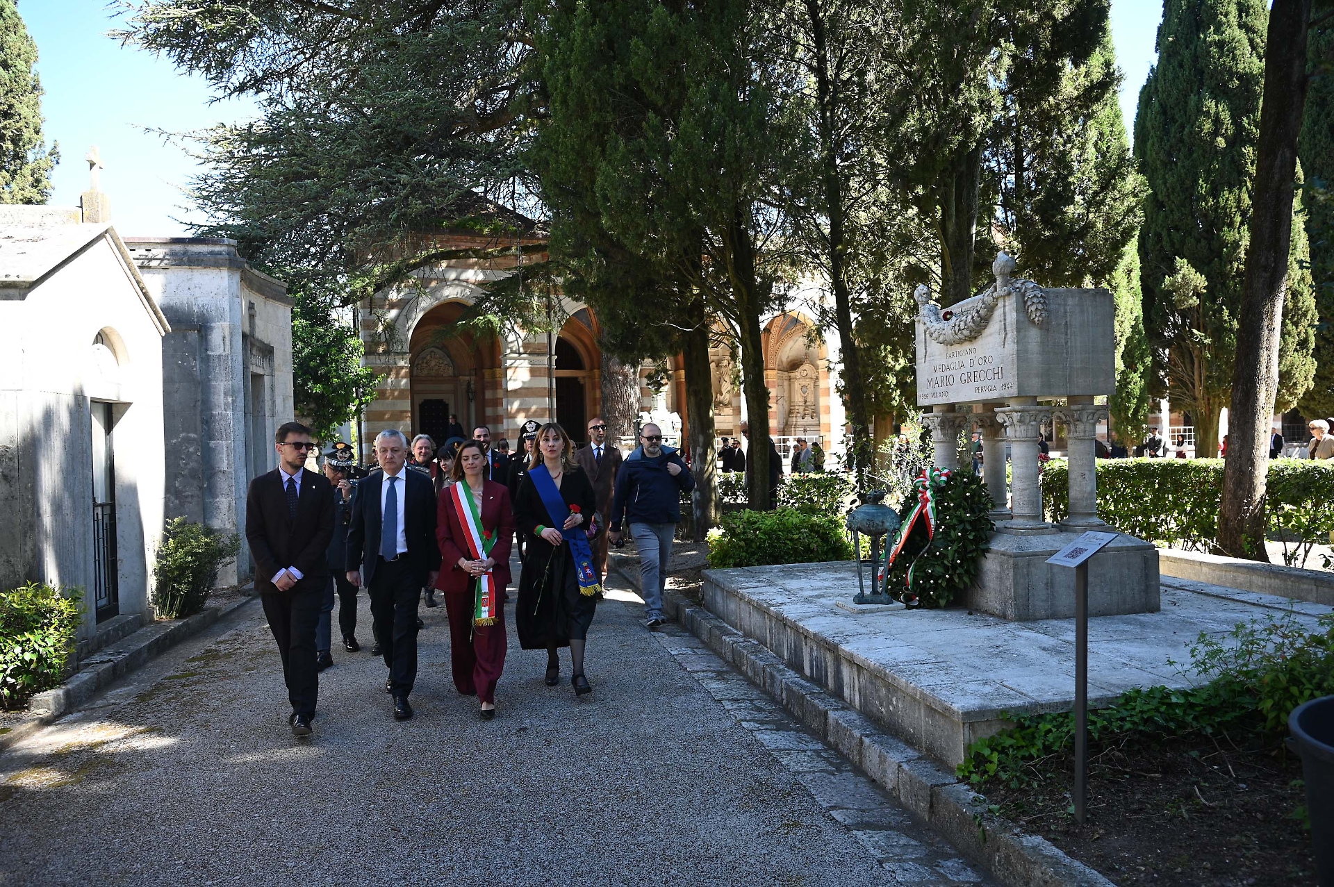 Al cimitero monumentale le autorità, dopo aver reso onore al Sacello dei caduti, dove sono state depositate corone d’alloro, hanno visitato le tombe delle medaglie d'oro della Resistenza. Ad accompagnare le autorità civili e militari sono state Chiara Coppini e Francesca Bertinelli, volontarie del servizio civile presso l’Unità operativa Manutenzioni e Cimiteri nell’ambito del progetto Memoria digitale. Il corteo ha quindi reso omaggio alle tombe di Rodolfo Betti, Elettra Gonnelli, Gino Scaramucci, Primo Ciabatti e Raffaele Rossi.