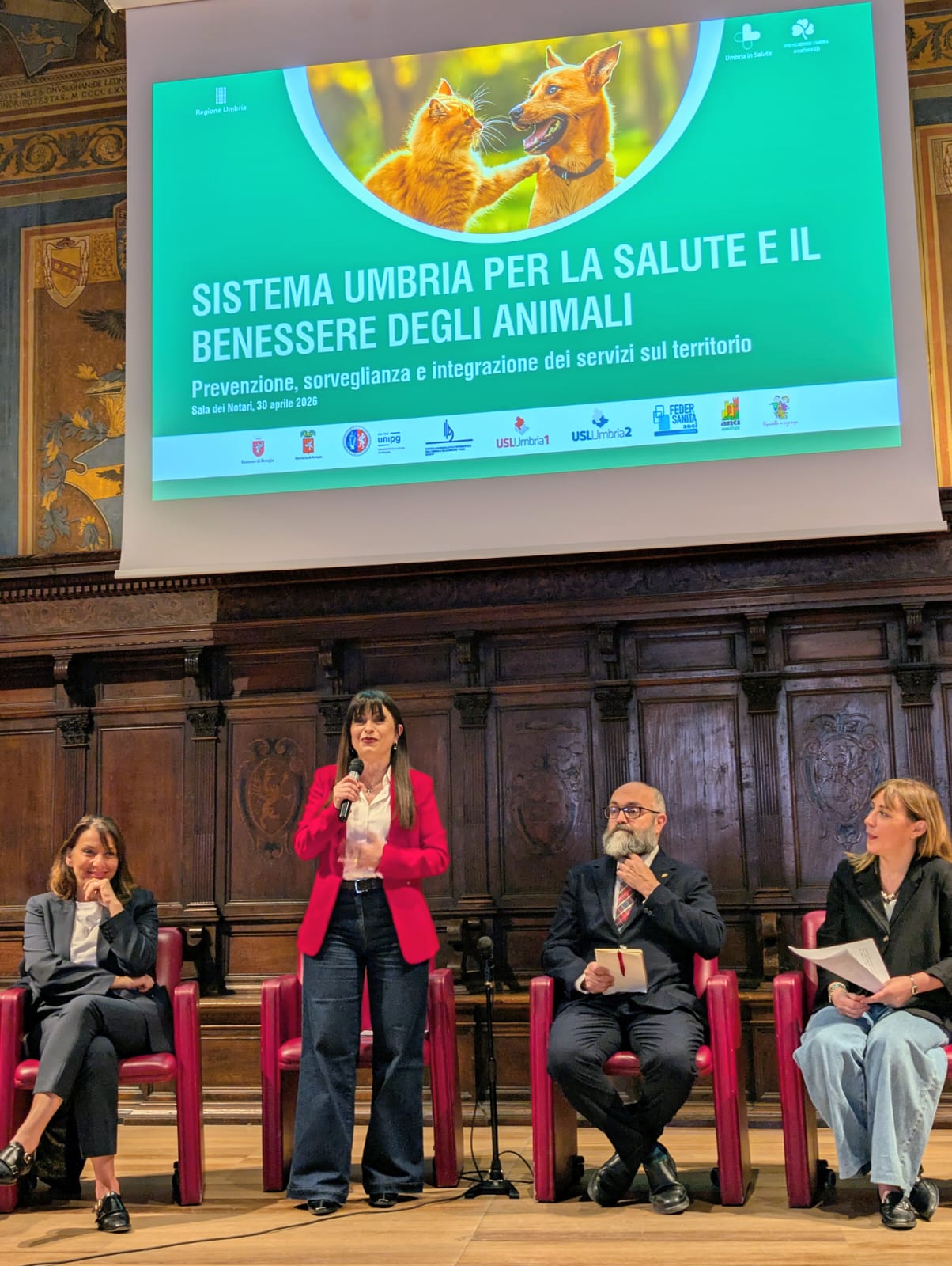 "Il benessere animale non è un tema isolato ma è il pilastro di una visione moderna: la One Health", queste le parole della presidente della Regione Stefania Proietti nel corso del convegno regionale Sistema Umbria per la salute e il benessere degli animali, che ha sancito l'integrazione ufficiale della sanità veterinaria all'interno della futura programmazione sociosanitaria dell'Umbria.