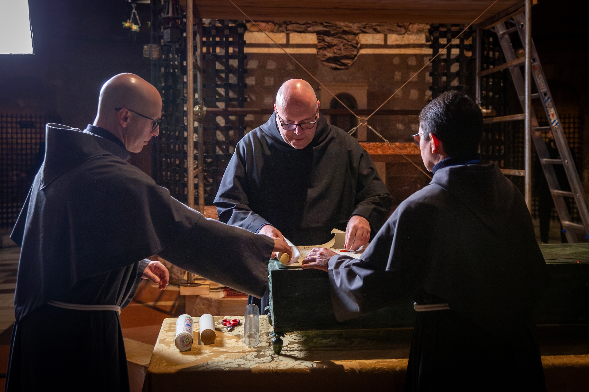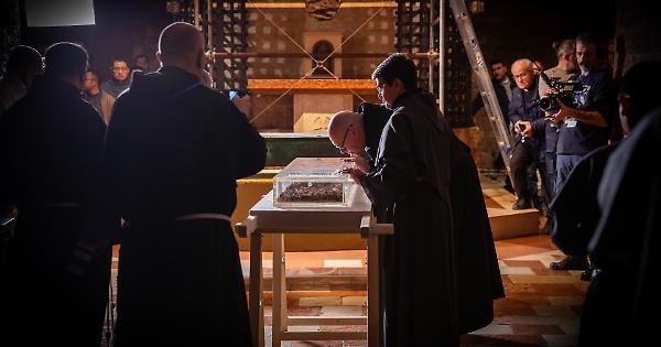 Stamani, alle 9 nella cripta della Basilica di San Francesco, in Assisi, c'è stata l'estumulazione delle spoglie mortali di Francesco. "Poterlo vedere ancora una volta è stato emozionante. È colui che sta ispirando la mia vita al seguito di Gesù" ha sottolineato fra Marco Moroni, custode del Sacro Convento. Le immagini di seguito sono state fornite dai frati del Sacro Convento.