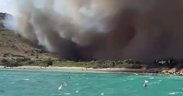 Inferno in spiaggia, le fiamme minacciano i turisti: bagnanti in fuga e soccorsi in mare, cosa sta succedendo