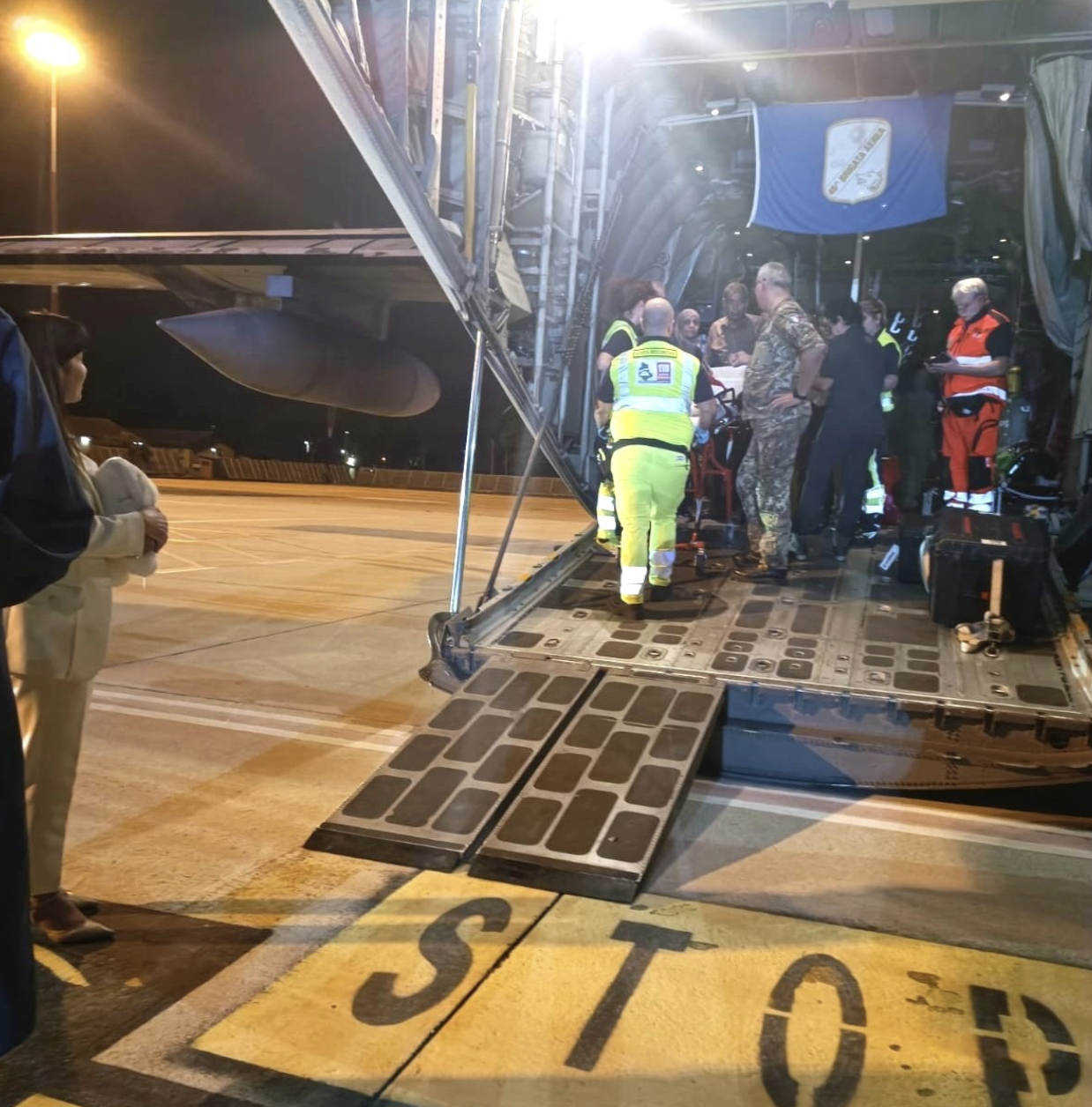 Alle 23.30 sulla pista dell’aeroporto militare di Ciampino è atterrato un C-130 dell’Aeronautica Militare, messo a disposizione dal governo per trasportare sei dei 31 bambini palestinesi bisognosi di cure mediche. Tra loro, un bambino di otto anni, accompagnato dai nonni e da una zia, è stato trasferito all’ospedale Santa Maria della Misericordia di Perugia, reparto di pediatria.