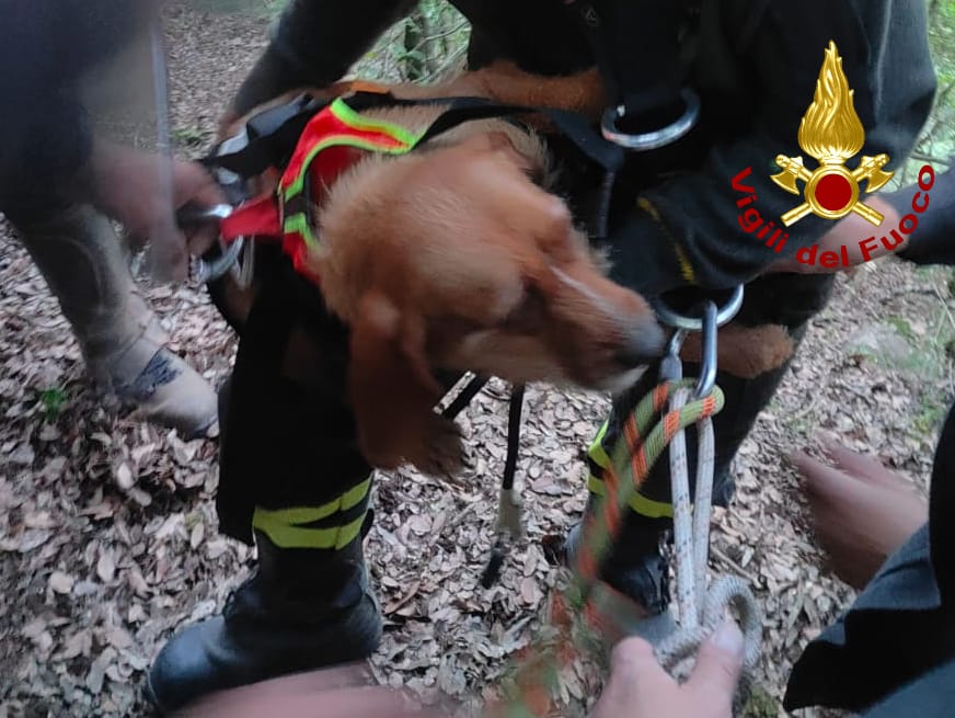 I soccorritori si sono calati in fondo al burrone per soccorrere l'animale che è stato poi imbracato con un'apposita pettorina per riportarlo sano e salvo dal suo padrone. Le sue condizioni non destano preoccupazioni.