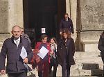 La commissione Rossi all'uscita da Rocca Salimbeni durante l'ultimo sopralluogo